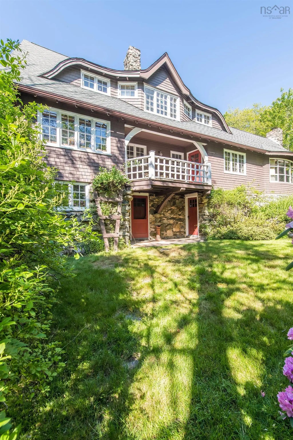 This 104-year old classic Andrew Cobb house, set into the hill on a 35,000 sq ft property overlooking Bedford Basin, has changed hands only twice in more than a century. The large treed lot features beautiful English gardens with a stone fountain. The house itself has all its original Craftsman features intact – built-in cabinets with leaded glass windows in the dining room, huge stone fireplace, built-in cabinets and beamed ceiling in the beautiful living room. Upstairs are three spacious bedrooms with the original multi-pane windows and some built in cabinetry, a full bathroom, as well as a smaller fourth room which has been used as a library/study. The main floor has a large kitchen, attached dining nook with built-in seating, and full bathroom. The spacious family room has a large stone fireplace, and bow window with built-in seating. The stunning Craftsman dining room and living room, with inter-connecting outdoor balcony, all overlook Bedford Basin, and are perfect for entertaining family and friends.The lower floor, set into the original stone foundations, features an architect-designed stone-walled and wood-panelled spacious den or home office. Two outbuildings – garage and gardening shed – harmonize with this superb Craftsman home. This home and its gardens have been lovingly maintained by the same owners for the past 40 years. It has been featured on a Canadian lifestyle TV show, on numerous Bedford Heritage walks, and adorns the poster and cover page on a booklet issued during the Andrew Cobb retrospective held by the Art Gallery of Nova Scotia.