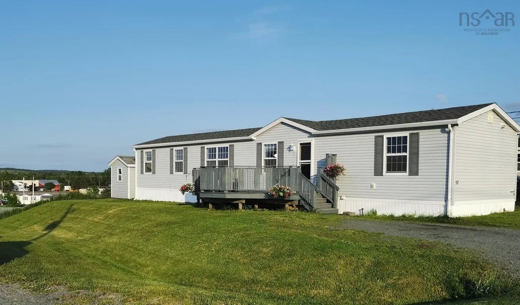 3 BR, 1.5 Bath Mini home in Greenhill Estates in Antigonish. This well maintained home has nice flow with laundry/storage room at the entry, large kitchen which opens to the living room with lots of natural light and a deck off the kitchen. The good sized primary bedroom is at one end with 1/2 bath and 2 bedrooms and a full bath at the other end. Home has laminate and vinyl floors for easy maintenance. There is a shed for garden tools or storage. The shingles on the roof were replaced in 2020. Entire home was recently painted. Ideal home for a young family or people looking for one level living. Like new condition! Only minutes to amenities. Ready for a quick closing. Call to view!