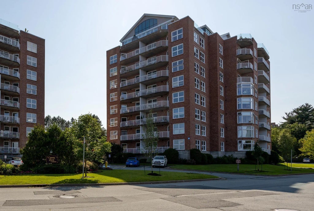 Convoy Quay Gardens is a resort like community located on the Bedford Waterfront. The day the photos were being done, I sat out at one of the Adirondack chairs in the common garden area and spoke to people coming and going. Owners were on the way to the pool with their grandchildren, women were coming out of the clubhouse after having knitting club, and others were on their way to the Halifax Basin waterfront to go for a walk on the 3km boardwalk, while others had their dogs out for some fresh, although humid air. This 7th floor 2 bedroom, 2 bath unit has a wonderful open living area with walls of windows, and a large balcony looking out to the beautiful gardens with a water fountain and outdoor heated pool. All the rooms are spacious and sunny, and the unit is neat and tidy and move in ready. The condo fee includes head, hot water, storage, underground parking and a live in Super. The common area consists of a Clubhouse with a fitness room, library, work workshop and a meeting room. This unit has underground parking, #64, in unit storage (unit 701++) and laundry room, and a separate storage locker at the parking level. Additional outside parking is available for $200 for 6 months. Custom window blinds are included, along with appliances.