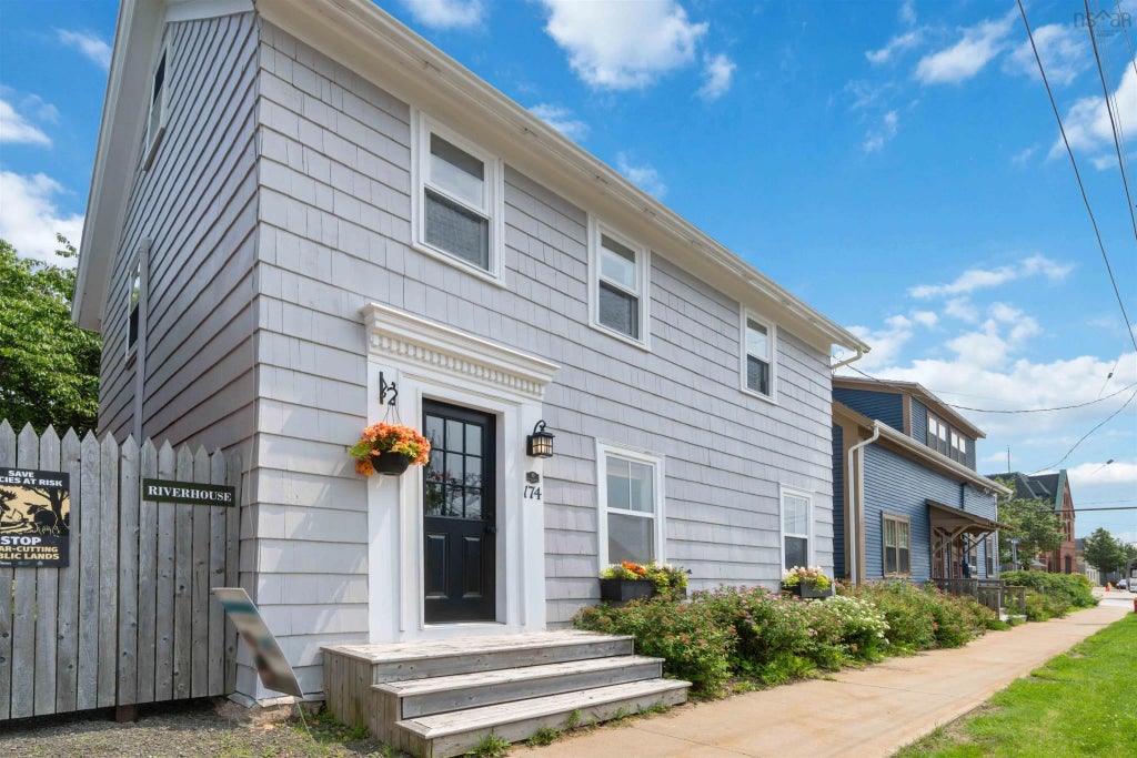 Welcome to 174 Saint George Street in Annapolis Royal, Nova Scotia! This charming heritage house, built in 1832, offers a unique opportunity as it is zoned for both residential and commercial use(Mixed use), making it perfect for those seeking a versatile property with a view. Featuring 3 bedrooms, 2 bathrooms, a den, a large private back yard and two generous sizes sheds this home has been lovingly maintained and updated. The kitchen has been recently updated, with beautiful butcher block countertop, and a new kitchen sink and faucet. With two heat pumps and a newly installed one upstairs ensures year-round comfort and energy efficiency. a new wood stove provides warmth and coziness during colder months, complementing the recently uncovered, sanded, and varnished spruce floors. One of the highlights of this property is the great water view. With the Annapolis River just across the street. Living in this neighborhood offers a delightful blend of convenience and charm within steps of your front door, access to a memorial park directly across the road, the Annapolis Royal Wharf, numerous bakeries, and artisanal shops, ideal for exploring and indulging in local delights. The nearby boardwalks and walking trails allow you to immerse yourself in the natural beauty of the area. History enthusiasts will appreciate the proximity to the Fort Anne National Historic Site, while culture enthusiasts can enjoy the King's Theatre, offering a variety of film screenings and dance performances. Don't miss the opportunity to own this wonderful property in Annapolis Royal, Nova Scotia, where heritage charm and modern amenities converge. The homeowner has taken meticulous care of this property, ensuring the peace of mind of future owners. The home has been repainted inside & ouside, installed a battery backup emergency sump pump in the basement, The upstairs bathroom updated, and a new exterior door and more, call today to book a showing of this beautiful gem.