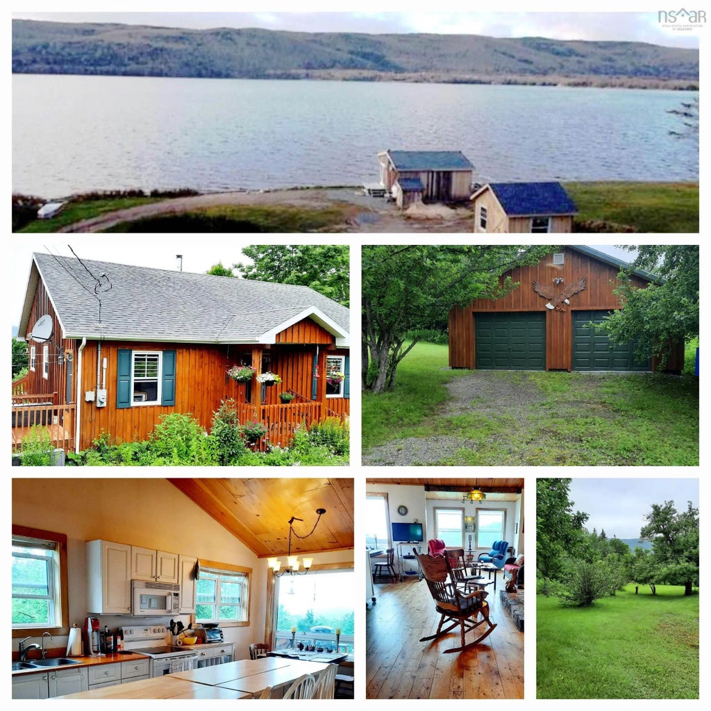 WALK ON WATERFRONT!!! If you are looking for a quality built home, surrounded by nature complete with walk on water front on the Bras D’or Lakes then call today for the opportunity to view this unique 5.22 acre property. The home is set well back from the road providing quiet privacy. Front door opens to a spacious foyer leading to an open concept kitchen, dining and living space, cathedral ceiling, large windows, wood stove. The home speaks to a love of nature with white pine ceiling & larch wood floor in main living area. Mud room/laundry is separated from kitchen by a space saving pocket door, exit to side yard & access to 4’ crawl space. Master bedroom has aspen floor, double closet, 4pc ensuite & private exit to back deck & hot tub. 2nd bedroom is conveniently located across from main bath. Exterior is white pine board & batten, 2 x 6 construction, well insulated, attic R40, 28x26 garage, finished interior, 200amp,attic storage, wood stove. Driveway leads to waterfront complete with lofted bunkie and sm storage shed. Home is being offered fully furnished…buy a grocery order and move right in.