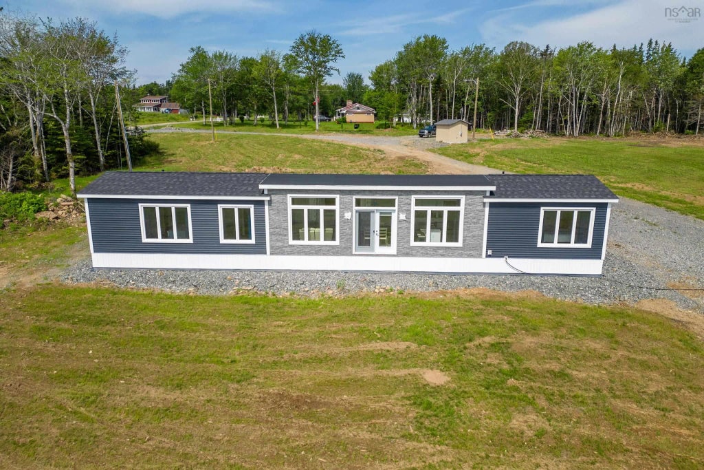 18 Calabash Road, overlooking the beautiful Bras d'or Lakes, is ready and waiting for you! This stunning 2022 Kent Seascape mini home is sitting on a surveyed 4.4 acre parcel with drilled well, 2 200amp electrical panels (one in the shed), RV hook up, wired Sea Can/shipping container and even a dog house with fully fenced play area. This mini home also comes complete with remaining balance of 10 year warranty. The lot has only recently been developed so new owners can complete it to suit their needs. Hobby farm? Large detached garage? Pool? All possible. Bright and clean is the best way to describe this home. The living room, dining room and kitchen all flow seamlessly together and are flooded with natural light. The perfect space for entertaining! The primary bedroom and den (3rd bedroom) are located on one end and the 2nd bedroom, a full bath and laundry are at the other creating a very private living space for all residents. The primary bedroom has a walk in closet, an ensuite bathroom and all bedrooms have same incredible views as the main living area. Located only a few minutes to North Sydney and only 30 mins to both Baddeck and Downtown Sydney come out and take a look, you will not be disappointed!