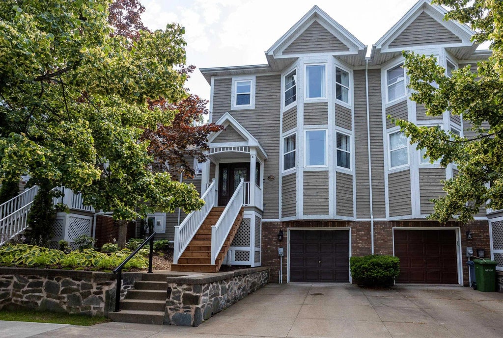 No Condo Fees in this beautifully maintained Regatta Point townhouse. Impressive from the moment you walk up the new front steps to the refined entry door. Tiled entryway leads to the hardwood floors throughout the main living area. The custom kitchen was brought back to the studs, tastefully renovated and leads to the family room with new exterior doors backing onto the southwest facing deck which has an awning to protect against afternoon sun. In addition to the large living and dining room there is a main floor laundry room and an updated powder room to complete this level. New hardwood staircase & updated balusters lead to the upper level with 2 good sized bedrooms and a renovated main bathroom. The primary bedroom which spans the front of the house has an updated ensuite and walk in closet. The basement consists of a single car garage, large rec room and a huge storage room. You can’t beat the central location, easy access to downtown and the highways, walking trails, seawall, great schools, shopping etc. Too many upgrades to list! Book your private showing today for this move in ready gem! see list of upgrades in documents.