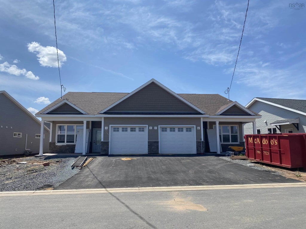 Almost Completed! Welcome to "The Meadows," a beautiful Falmouth, Nova Scotia community. 1-level semi-detached designed with the empty nesters in mind. 2 bed 2 Full baths will make you fall in love with easy living. Bright, open-concept kitchen with lots of cabinet space and a nice-sized pantry.Quartz Countertops and a lovely island. High tray ceilings in the living room and a beautiful sunroom leading to the private back deck. A Heat pump for efficient heating and cooling all year round, primary bedroom off the living room with ensuite and walk-in closet. Single-car Garage makes storage and winter parking so easy!Pavement, Landscaping and irrigation included !! 5 minutes to Windsor for all your shopping needs, 20 minutes to Wolfville, wineries, dining and more! 40 minutes to Halifax and moments away from Golf courses, walking trails and much more.