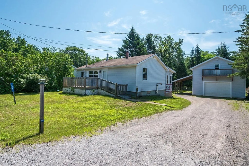 You spend all your time in the garage, but the family insists you also need a house…this is the ideal package for you! Located just minutes to Greenwood amenities, this cozy bungalow is an affordable option compared to high priced rentals. Perfect for first time home buyers, the eat in kitchen features included appliances, recently painted cabinets, and a quality heat pump for efficient heating & cooling. Opening onto the sunny living room which has also had a fresh paint job and leads to the front deck. The split bedroom floorplan gives you privacy between family members, and the primary boasts a dressing room and direct access to the 4pc bathroom. The practical porch/sunroom is a great spot to unwind and overlooks the partially fenced backyard. Full unfished basement provides lots of storage space and laundry connections. The detached two-story garage is a dream come true! Constructed in 2008 and complete with an attached carport, auto door opener, and a full loft space with a bar and balcony. Outside, you will find a manageable sized yard with double gravel driveway, XL storage shed, and a cute hideaway with a roof shelter & plug ready for the installation of your hot tub! Drilled well, recently pumped septic system, several updated vinyl windows, and a newer 200amp panel & fiberglass oil tank. This home is ready for a quick closing and is priced for you to make cosmetic changes to suit your taste. Contact your agent today for a viewing!