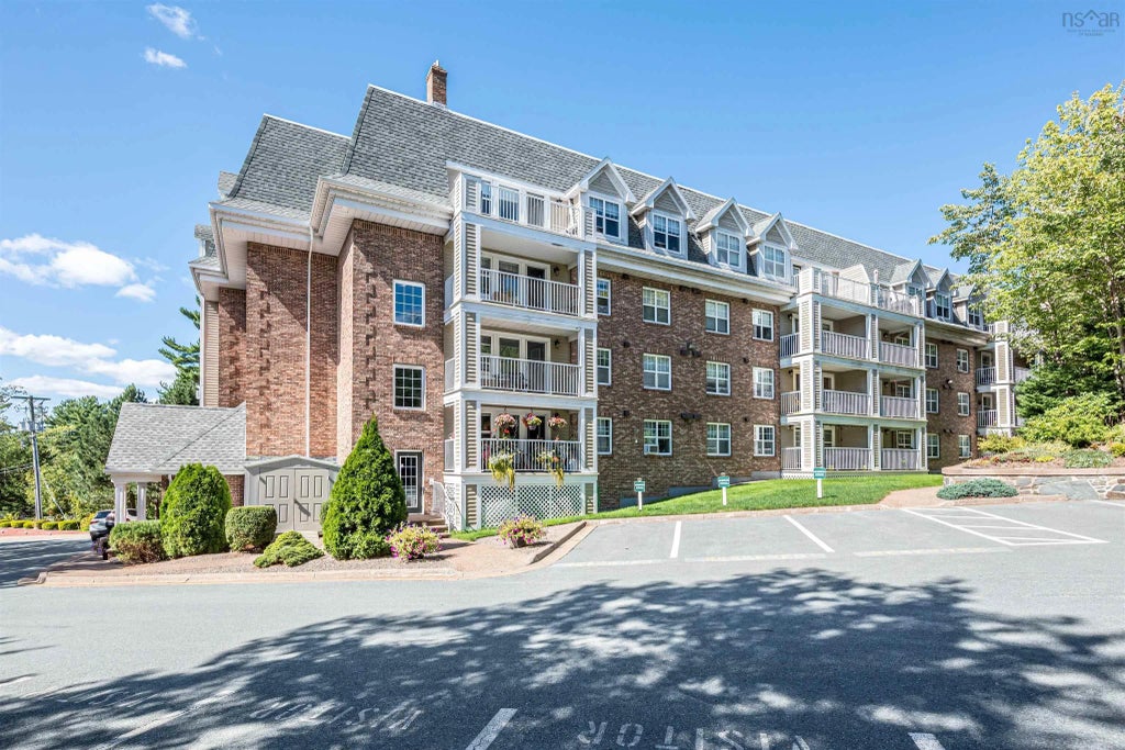 Welcome to this charming 2 bedroom/2 bathroom condo on the 2nd floor of Brookshire Mews. Come inside and be greeted with an open concept with your foyer, dining, kitchen, living room and see out to your green view! The master bath has a sliding barn door and 2 walk-in closets. Some may say this is a very accessible unit. Storage room inside your unit along with in unit laundry. Your deck has a view in to the mature trees and it's known to have the same birds that come to visit! All appliances included and 1 assigned spaced with storage in the heated garage. The carpet free and very clean spaces are ready for occupancy in September. This unit is perfect for those seeking a peaceful retreat from the hustle and bustle of busy city life with its location in a serene wooded area, offering tranquility, security, walking paths, beautiful gardens and privacy. Condo fees are $526.20, does not include NS Power. The building is well maintained, pet friendly, heated by natural gas, has a wonderful residential family feel and has an live in superintendent who is always willing to help. All offers due Monday by 3pm.