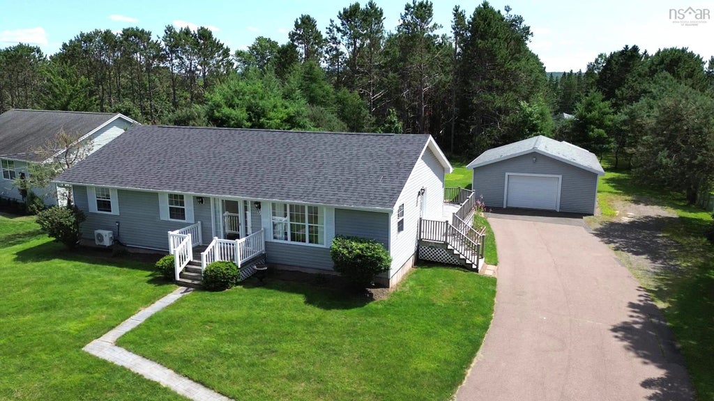 Enjoy the Largest Residential Lot on this Street! A lovely 3 Bedroom, 3 full bath bungalow awaits you perched atop a gently sloped lot, angled to perfection, and tree bordered for privacy. With a soft grey vinyl siding, 3 year old roof shingles, and a driveway gently curving towards the detached 2 car heated and wired garage, it is a picture of beauty. This home, in an established and fresh, thriving neighbourhood will appeal to young professionals, families (with a school just across the street), or retirees who will love the main floor laundry. Light floods into this home through the glass screen door at the front entrance, traveling right through to the garden doors out the back, taking your attention to the deck and spacious back yard beyond. The white cabinetry in the U-shaped kitchen showcases a well-equipped space with display cabinetry, spin out recycling, heaps of storage and recessed pot lights. The double sink looks out over that gorgeous backyard, of course. Hardwood flooring runs throughout the dining room, large front foyer, through the laundry and living room and down the hall to your bedrooms. The primary bedroom has a walk-in closet and a 3-pc ensuite. Downstairs, a partially finished basement (quick and easy to complete with ceiling and baseboard trim required just down the hall and in one other room) offers a full bath, home office, two rec rooms separated by French doors, storage, a wide hallway area that awaits your imagination, and a walkout to the back yard. This home features in-floor heat in the basement as well as a heat pump on both levels and baseboard heat on the main level. This is the neighbourhood that you want to call home and this house is available for immediate possession.