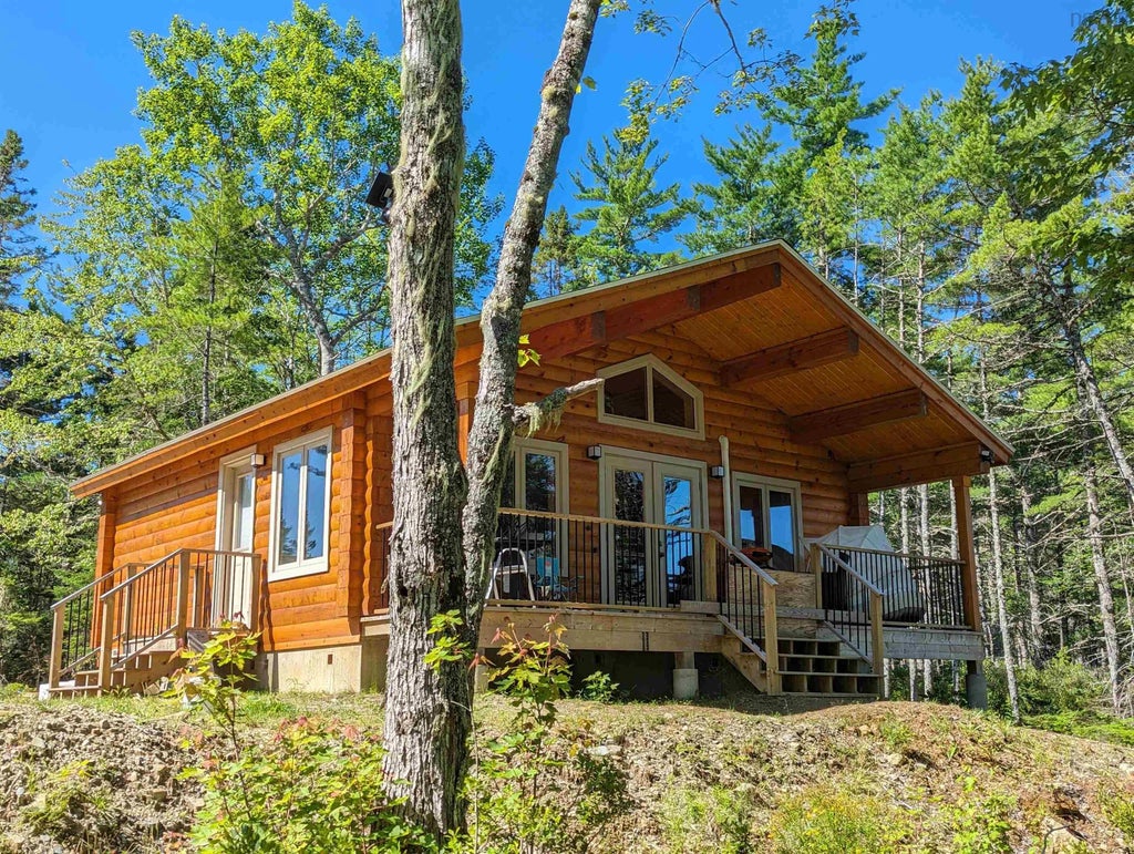 Exceptional year-round "Dow and Duggan" log home/cottage,on a 2.9 acre lot, with 297 ft. frontage on Molega Lake, AND a 53.7 acre parcel across to road, known as Lot 14, PID 70135975, giving you a fabulous 56.6 acre estate. (If a Buyer wishes to only purchase the log home parcel, PID 70146071, the list price is $499,900.) The setting is delightful, overlooking the lake, and the warmth and character of log construction, with exposed beams, wood interior walls and pine ceilings, makes this a "picture-perfect" lakeside getaway. Built and finished over the past few years, with attention to every detail, inside and out. The open concept living room/kitchen features vaulted wood ceiling, and high windows to let the natural light flood in. Double doors lead to a large deck, facing the lake and sheltered by the extended roofline. The custom kitchen boasts gorgeous turquoise appliances, including a gas range, Corian countertops with undermount sink, and a unique under counter washer/dryer unit. Two bedrooms and a 4pc bath complete the layout. Other features include durable solid-core flooring throughout, ductless heat pump, exterior generator hookup, and the location is served with cable, phone, and Fiber-op. The poured concrete, insulated 6ft basement with outside entrance provides excellent storage. If you have been looking for something special, on one of Nova Scotia's most coveted cottage country lakes, this is it!