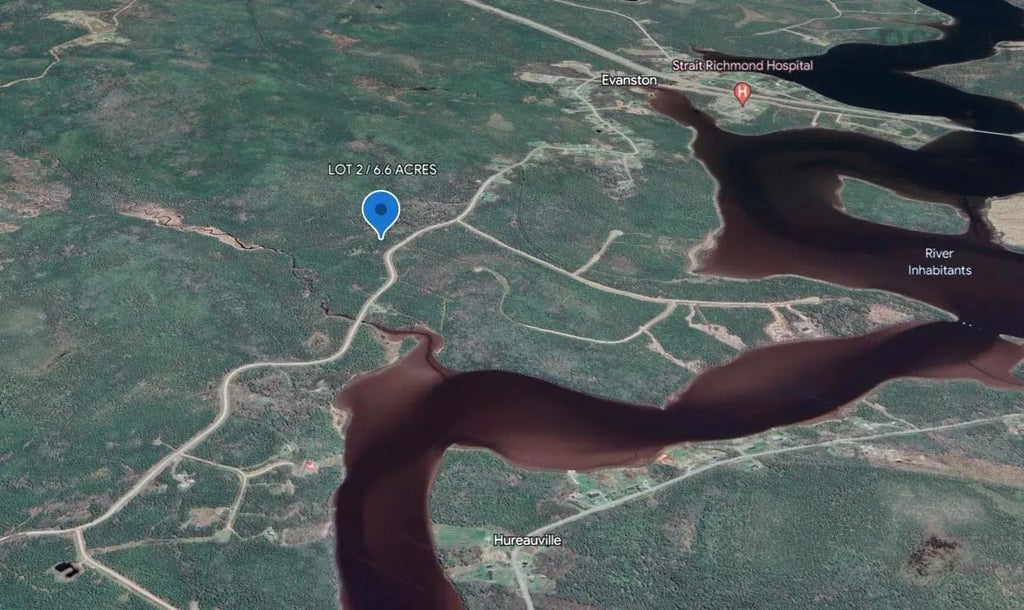 Attention fishermen and nature lovers! Here is the perfect location for your dream home or getaway cabin! This 6.6 acre lot is fully treed with mature growth that has not been forested. The hilltop on the western half of the land is high and dry with 296 feet of road frontage. It should make an ideal building lot. There is a very small brook that runs north across the middle of the land. It seems to originate from a 50m wide wetland, which could make a very nice pond. The land is dry again toward the back. Access to River Inhabitants is just 300 metres away!. River Inhabitants is a popular fly fishing spot offering Atlantic Salmon, trout and bass. Evanston Road is a wide, well maintained, gravel road and pavement is just 500m away. The nearest power pole is about 400 feet from this lot - no need to go off grid unless you want to! All amenities are close by: 2.5 KMs from the town of Evanston and Strait Richmond Hospital and 23 KMs from the Canso Causeway. (Note - map may show location as Basin Road). Directions: Take exit 45 from Hwy 104, then it's 2.3kms north, towards Evanston. Lot is approx 740 feet (0.3 KM) from civic # 664. Look for orange flagging tape and the Viewpoint sign. ** Be sure to watch the Google Earth video tour!