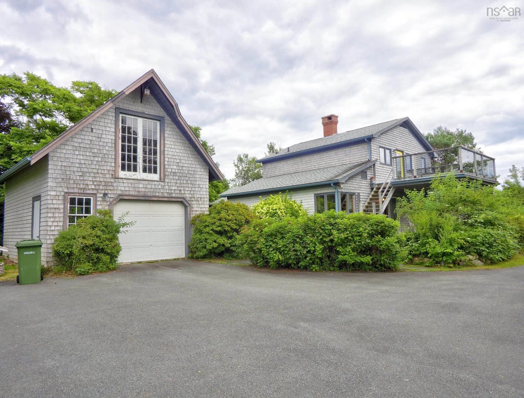 Village Home Near the Park ~ With mature trees and shrubs on a large level lot, this home has a very private setting, yet is within walking distance of the day care, skating / hockey / curling complex, tennis club, schools and more. The covered deck opens to both the front and the back yards and is an inviting place to gather with friends and family, rain or shine! One level living with a mudroom, three bedrooms, 2.5 baths, laundry, hardwood / softwood floors, and a wood burning fireplace, all add up to a lovely family home with an appealing floor plan. The central open stairs lead to a bonus second storey area with a kitchenette, a den / office (could be a bedroom) full bath, and a second deck for star gazing. The upper level is light filled, and could be a family room or project area. Exterior stairs from the main level deck, expand the options for this upper space ... home office, exercise / yoga / art studio or granny flat. The detached bright garage has power, a workbench and offers a spacious loft for storage for all one's seasonal gear. The house is nicely set on the lot, with a slate walkway and a paved driveway, along with lots of room for a veggie garden or swing set. If more space is needed, the basement has a good ceiling height, several windows and would welcome development. Chester is a seaside village, offering a Yacht Club, Art Centre, Playhouse, coastal golf course, interesting shops / cafes, walking trails, full service marinas nearby, and more, 50 minutes from Halifax and 30 minutes to Bridgewater, on Nova Scotia's treasured Bluenose Coast, the South Shore.