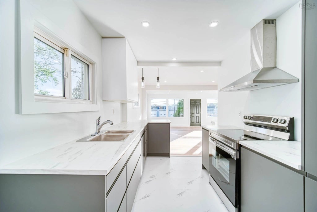Still looking for an awesome home in HRM? You will love this totally renovated, modern feel 2 story, 4 bdms, 2 bathrooms home in Dartmouth that feels and looks like NEW! Located minutes to all great amenities, close to both bridges, schools and on the bus route this home will sure impress the most critical buyer. This property has been fully renovated in the last few weeks including new roof shingles, new doors, new kitchen, new appliances, new bathrooms, new mudroom, new floors, new trims, all new light fixtures, new hardware, new paint (interior and exterior), new deck, new insulation, new plumbing for the bathrooms, new electrical panel (200 amps), 2 new just paved driveways, fenced yard with 2 access gates and more. Lower level is an open concept modern kitchen design, living room and a large sunroom with lots of natural light. One bedroom and full bathroom, mudroom and 2 access doors. Upstairs features 3 bedrooms and a beautiful large bathroom with a soaker tub and a shower. Basement is unfinished but large enough for 1 or 2 bdm apartment with its own access and plumbing already in place Additional 2 pc bath in the basement. A must see!