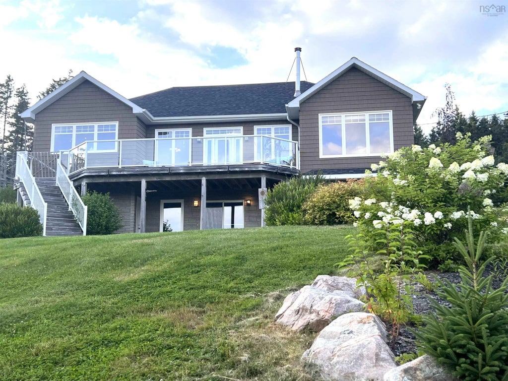 Stunning home, only nine years old, with panorama views of the oh-so-popular Bras d'Or, Lakes in the Groves Point area of Nova Scotia. 1.95 acres of privacy, Wake up in the morning, go onto the deck with your coffee, and enjoy the views and the sunshine!! This home has three bedrooms and three bathrooms, the master bedroom has an ensuite and a walk-in closet. Fully completed up and down, one of the downstairs bedrooms is being used as a weight room, this home is only nine years old and has been very well looked after including a long paved driveway up to the home. Plus the yard has been landscaped. Big bright windows throughout to see the views of the lakes from every room, along the front of the home, and also engineered hardwood flooring. You must come to view this home to see its true beauty!! Contact the realtor for a viewing.