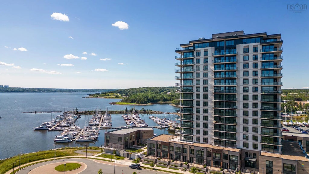 Welcome to the exquisite Seapoint Condos, a brand-new residential 16 storey tower, nestled along the Dartmouth side of the Bedford Basin. This splendid two-bedroom, two-bathroom corner unit, boasts an array of captivating features that cater to your modern lifestyle. The generous 1200+ square feet of open-concept design merges the living, dining and kitchen areas creating a seamless flow. Framed in floor to ceiling glass, providing an abundance of natural light with a warm and inviting glow. These windows transform the living spaces into a canvas of ever-changing scenery, providing a daily spectacle of coastal vistas and passing yachts. The open kitchen with oversized island, integrates the living space, allowing the chef to remain part of the conversation. Sleek countertops, modern high-end Kitchen-Aid appliances & ample storage space, make every culinary endeavor a joyful experience. The grandeur extends to the sleeping quarters, each with its own ensuite bath and oversized walk-in closets. Indulge in the breathtaking magic of each sunrise from your private wraparound balcony as you savour your morning coffee, enveloped by the gentle sea breeze. Enhancing the allure of Seapoint Condos is the well-appointed common room with terrace. Stay committed to your well-being in the state-of-the-art fitness room with yoga studio, providing you with all the amenities required for a rejuvenating workout. Positioned advantageously, Seapoint Condos presents an ideal location, minutes to both bridges, major highways, the Brightwood Golf course, a variety of prominent big-box retailers and a quick drive to downtown Halifax. Enjoy leisurely strolls on the walking trails while admiring the tranquil waters and the sail boats at the adjacent Dartmouth Yacht Club. One year Builder's warranty followed by a 5 year Lux Home Warranty. The low condo fees cover heat and outdoor maintenance. Underground parking with storage locker included. Come experience a new standard of coastal living!