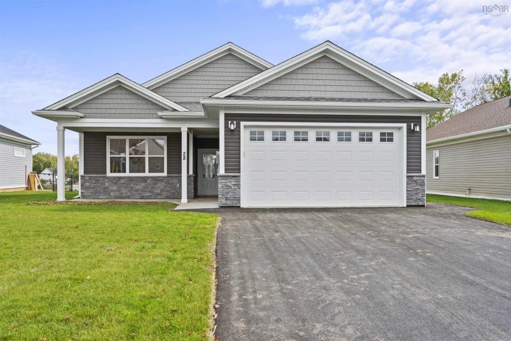 Don't miss this fantastic opportunity to own a beautiful detached home in the desirable Falmouth Nova Scotia! This stunning 2 bed, 2 bath property is perfect for those looking for single-level living with high ceilings and energy-efficient features. For a limited time only, the builder is offering either an appliance package or an additional heat pump incentive so time is of the essence. Step inside and be amazed by the spaciousness and elegance of this new construction home, beautifully designed to offer comfort and convenient living. The open-concept layout is perfect for entertaining friends and family. The primary bedroom boasts a true retreat, featuring a grand tray ceiling, an ensuite with a double vanity and quartz countertop and a walk-in closet, providing ample storage space. Located in a peaceful community, this home is conveniently close to all the amenities that a retiree could desire. Enjoy leisurely rounds of golf, visit nearby wineries, and indulge in fine dining experiences. Plus, Halifax is just a short commute away, ensuring that you're never far from the excitement of the city. Don't wait - seize the opportunity for a relaxed and peaceful lifestyle. Contact us today to schedule a viewing and start living your best life in this incredible home.