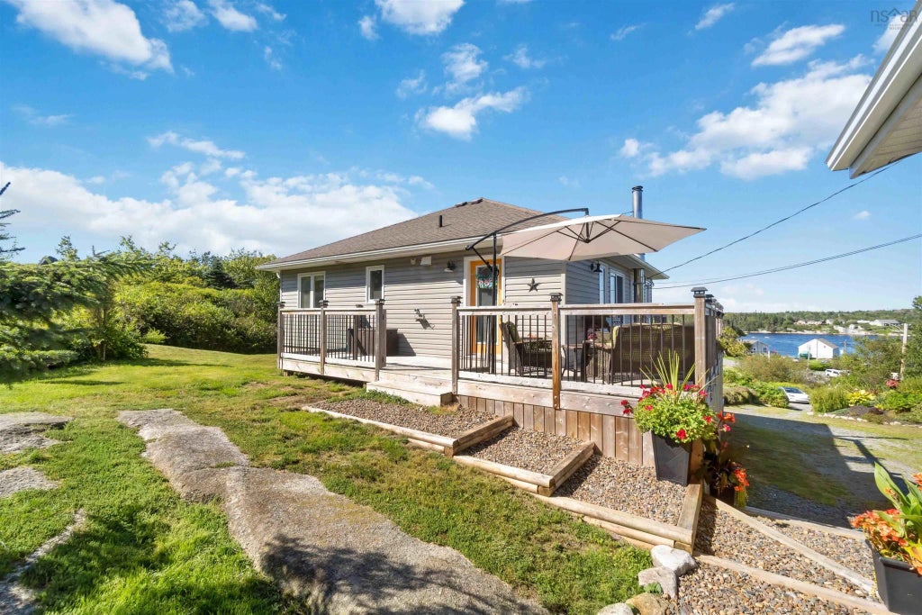Picturesque ocean views in the charming seaside village of West Dover! Great 3 bed 2 bath home with lots of privacy. On the main level you will find the large foyer & laundry closet, open concept kitchen & dining room, living room with heat pump & walkout to the 2 side wrap around deck. There is also an updated bathroom, primary bedroom & 2nd bedroom on the main floor. Downstairs is the rec room with wood stove, wet bar & walk out, 2nd full bath & 3rd bedroom. Lots of updates throughout including flooring, appliances, mini split heat pump, trim, back splash, septic field, generator hook up & more. The property is lovely with gardens surrounding the house, a beautiful flat yard & absolutely stunning fire pit area with included pergola. There is a mini garage perfect for all the toys heated & cooled with mini split heat pump as well an additional garden shed. Great location only 30 min to Halifax or Upper Tantallon and only steps to the ocean. Feel the beautiful ocean breeze sitting beside your bonfire or on your ocean view deck.