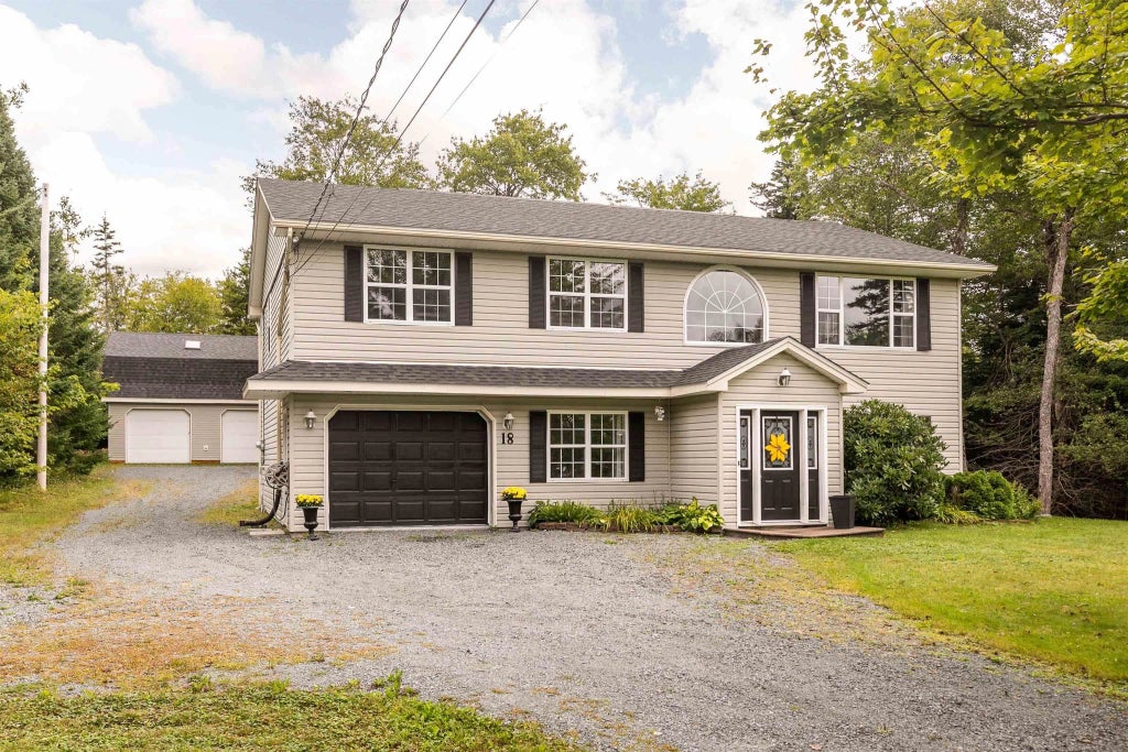 Rural living meets city convenience in Highland Park. 18 Rising Sun Trail is a 27-year-old 4-bedroom, 3 bath raised bungalow that is on the market for the first time since construction. The flow from the kitchen to dining room to living area is perfect for entertaining. The kitchen/dining room offers abundant maple cabinetry, and convenient access to the deck that overlooks the private back yard. The living room, hallway, and primary bedroom feature beautiful hardwood, and the lower level offers generous auxiliary living space with newer laminate throughout and a single built-in garage. Roof shingles approximately five years old and deck was built in 2022. Car enthusiasts, workshop aficionados, crafters, gardeners, and more will appreciate the 28' x 42' double-detached garage with loft and in-floor heat, offering endless potential to create a unique space detached from the main home. The property backs on to a provincially-owned lakeside greenbelt, with Cox's Lake a five-minute walk through a path out back. Imagine the privacy of rural life with the shops and services in Upper Tantallon just minutes away. This property is a blank slate, waiting for a new owner to make it their own. Viewings by appointment. Book yours today.