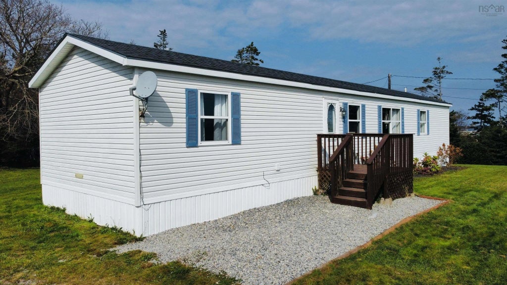 Modern, well-maintained, move-in ready, mini home, located in a quiet area in Clam Point close to many white sand beaches. Offering beautiful views of the Atlantic Ocean. Built in 1996 this mini home has undergone many recent updates including, but not limited to the roof, new appliances, tile backsplash, flooring, bathroom, electrical, and painting throughout the home. It is extremely efficient to maintain with the new heat pump, electric fireplace and electric baseboard. There is also a water treatment system installed. Outside the spacious back patio offers a great private spot for entertaining. The front is nicely landscaped, and the driveway provides ample room for parking. There is a 24’x 24’ two-story barn.