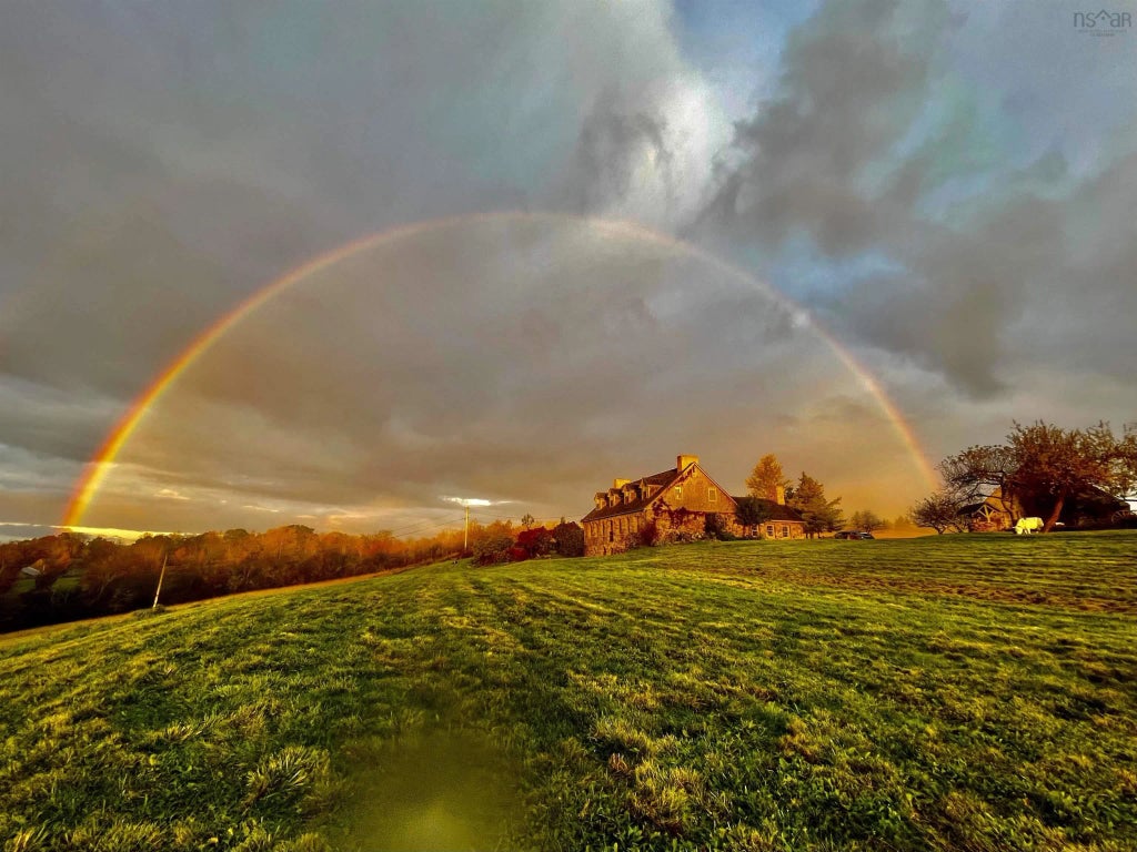 Having the distinction as being the oldest existing structure east of Quebec City, the Mission was built by the French at the request of Abbe M Thury, for the priests serving the Acadian people as well as a fortification against the English. Also known as “The Olde Stone House”, the property boasts one hundred acres of prime agricultural land and forest. Only 45 minutes from Halifax and 15 minutes from Windsor, the scenic pastoral sweeping hillside views make this one of the most beautiful locations in the country. Currently the residence of internationally renowned photographer Sherman Hines, the potential uses of the estate range from art gallery, museum, event venue, winery, brewery or even a development complex as an artist retreat. The historical importance, impressive land and spring fed well would enable any of these ventures. The two-hundred-foot-deep spring fed drilled well provides 20 gallons a minute. It has equivalent value as a family home. A great place for children to grow up with the prized King's-Edgehill School nearby. This sprawling estate on 100 acres has 8585 square feet of living area, and comprises 5 bedrooms, and 4.5 bathrooms. Along with the main residence, there is a chapel, barn museum, a 660 square foot guest house, the old stone house garage and office, outhouse gift shop, chicken coop, storage building and “Falcon 2” for landscaping equipment. Luxurious lifestyle and fitness amenities are also part of the package which includes a 20 X 40 foot pool, patio and tennis court. In the main house, the dining room is a splendid place to hold dinner parties and the country kitchen has been fully updated, including the addition of a large island, providing optimal space for cooking. There are many living areas with grand fireplaces to warm up in the winter months, three comfy bedrooms with exposed beams, a jet tub, and period furniture maintaining the home's aesthetic integrity.