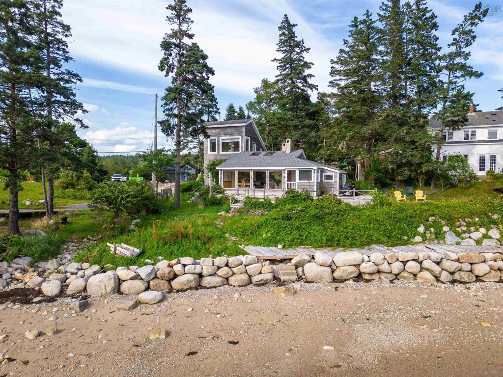 Unlock the door to your seaside dreams with this inviting BEACH HOUSE in Boutiliers Point! Offering 71 feet of prime beach front on Cowlow Cove with panoramic views of three islands in St. Margarets Bay. Built for year-round living, the open concept living and dining room welcomes you with vaulted ceilings, skylights and a wall of windows that create a naturally bright and relaxed setting. Neutral finishes and nautical accents echo the natural beauty of the private beach just beyond your doorstep. A tall beach stone fireplace mantle with a new efficient insert sits proudly in the main room. Upstairs you will find a fantastic primary suite you will never need to leave; views for days, ensuite bath, walk-in closet, and a private balcony. Imagine waking up to the calming sound of ocean waves lapping on the shore and opening your eyes to scenic elevated views, all from the comfort of your bed! Below the primary suite is an attached double car garage that offers tons of additional storage space. Set in a sought after neighbourhood off of the main road, it’s located less than 15 minutes to Tantallon for all amenities, and 45 minutes to the airport. This is your chance to own a prime piece of Nova Scotia’s coastal beauty!