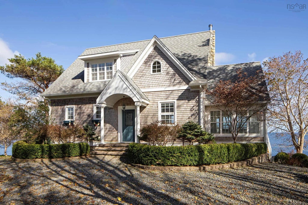 Perched along the shores of beautiful Lunenburg Bay, just minutes away from the famed picturesque town carrying the same name (also a UNESCO World Heritage site), this gorgeous oceanfront property is simply fantastic. Enjoying superb panoramic views of the entire bay, the gently sloping terrain includes almost a full acre of nicely landscaped, elevated land. Built to exacting standards in 2005, the 3-bedroom home enjoys front row seats, offering incredible views from almost every space. On the main level, the open concept living area -- complete with wood burning centrepiece fireplace, hardwood flooring, and a well-appointed kitchen with granite countertops & radiant heat -- plus a flow-through dining area with end-to-end windows, all definitely set the stage. Adding to the main level mix are a lovely primary bedroom with 5-piece ensuite, a convenient enclosed laundry nook, and a 2-piece powder room. Accompanying the two upper-level bedrooms is a spacious den/landing area & 4-piece bath. Last but not least, the heated basement walkout level with workshop (approx. 850 sq.ft.) is already roughed in for a fourth bathroom, and drywall-ready for further expansion!