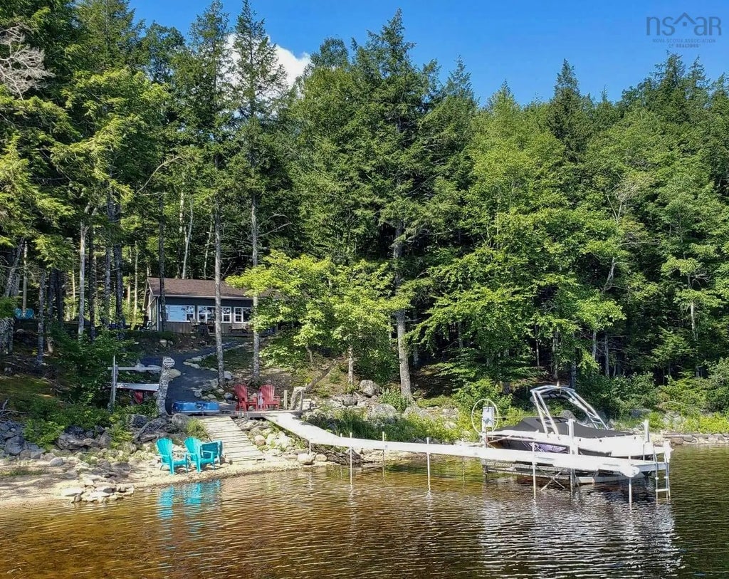 SELLERS ARE MOTIVATED TO SELL! Molega Lake Waterfront Cottage with Year-Round Road Access. This 2 bedroom, 1 bath open-concept home comes completely FURNISHED; just pull the car up and enjoy! Features of this property include a 40' dock, 2 outdoor deck spaces, a screened-in porch with propane fireplace, Highspeed internet (Bell Fibre-op), 12x20' dbl door bunkie, large shed. Septic was just pumped in Nov 2023. Just 35 min drive to all amenities in Bridgewater & HWY 103.