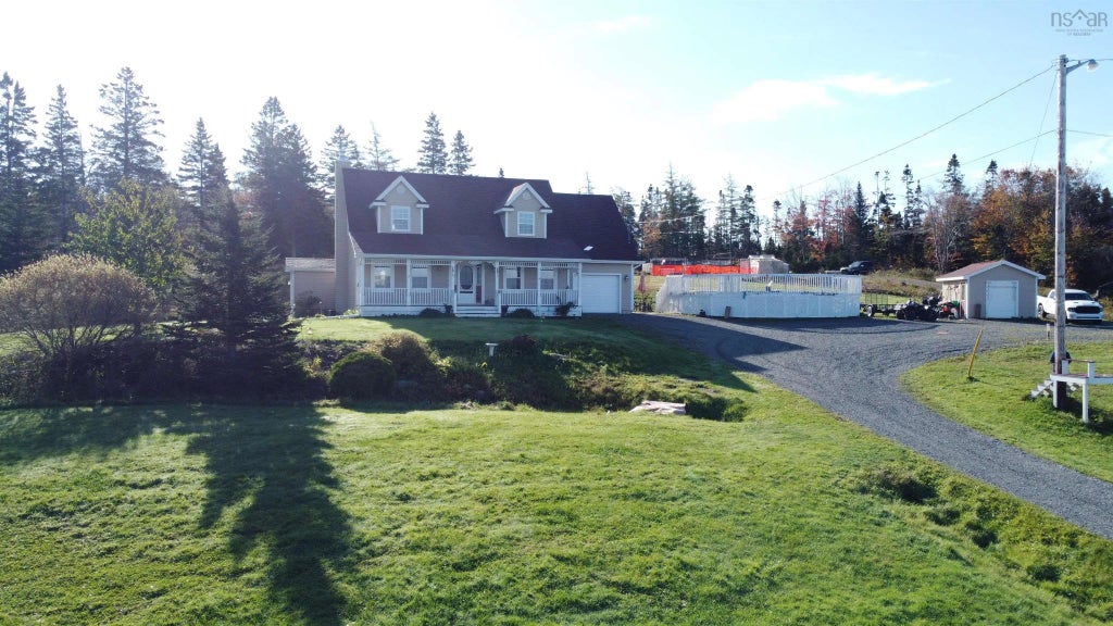 See 'Virtual Walk-Through Tour and Floor Plans. Discover the beauty of East Coast living with this stunning Cape Cod home. Built in 2000 this exquisite property offers a picturesque setting with breathtaking views of Lennox Passage, along with 33 acres, you will have deeded access to 310 feet of shoreline right at your doorstep. Boasting over 3000 square feet of finished living space, this house exudes charm and functionality. Family size kit with loads of counter and cabinet space, S/S appls., sep. Dining area, great living room area with water views. Main floor office or den. Main flr laundry and 2 pce bath. The beautiful interior features a great floor plan with generously sized rooms, including four bedrooms on the upper floor and a 4pce bath with claw tub and sep. shower. The Primary bedroom has a 2 pce ensuite and large walk-in closet. Extra hidden storage space in the bedrooms. The gleaming hardwood floors add a touch of elegance, and in-floor heating throughout the home will ensure your comfort during the winter. The walk-out basement is a hidden gem, offering potential for rental income and includes a cozy wood stove for added warmth and comfort. There's also a fifth bedroom, a fully finished basement with a media room, and an additional full bathroom for added convenience. Convenient indoor access to the single attached garage. A fantastic above-ground pool for endless summer fun. Enjoy the serene ambiance, picturesque sunsets, and the serene Cape Breton Island landscape. Nearby amenities include: golfing, marina, hiking trails, ATV trails, and so much more, this location truly offers the perfect East Coast lifestyle. Don't miss out on the chance to make this Cape Cod gem your new home. Call now to schedule your viewing and experience the epitome of Cape Breton living.
