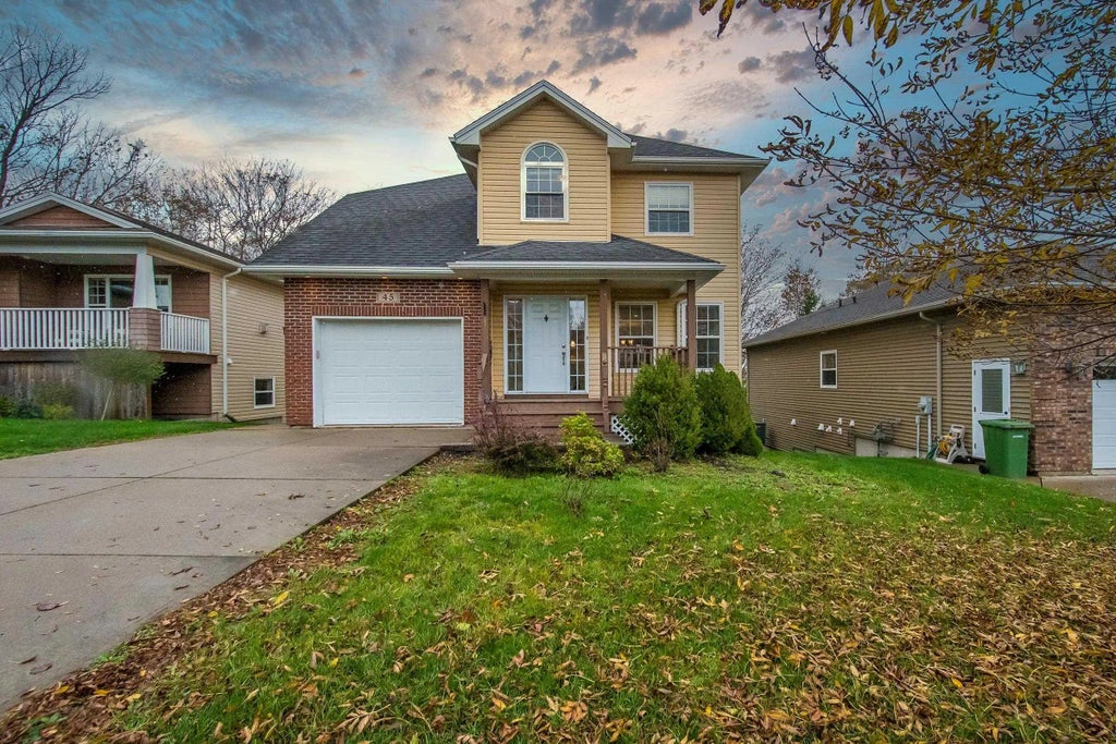 Custom R2000 two story. Fully finished 3 bedroom, 4 bathrooms. Master bedroom with ensuite and walk-in closet. Laundry is located on the lower floor. Open concept kitchen with pantry and adjacent dinning room with see through gas fireplace separating the dinning and living room. 1/2 bath on main and the attached garage. Carpet stairs heading down to the basement has rec-room, full bath, and a walk out that opens to a fully landscaped and well taken care of lawn with storage shed in the back. Hardwood stairs to the upper floor with owners suit, walk-in closet, ensuite, two bedroom and another full bath with laundry. Paved Driveway and fully landscaped with Shed in Backyard.