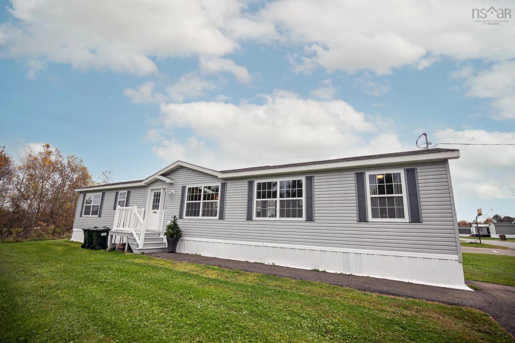 TWO BEDROOM EXECUTIVE 2007 mini home! Sitting just on the edge of Amherst. This floor plan offers 2 good sized bedrooms, full bath, laundry, large living room & kitchen with carpet & vinyl flooring throughout and added skylight & piano window for excellent lighting. This home also offers vaulted ceilings! Outside offers a double paved driveway, walkway, deck & private lot! This home has been cared for since day one, and only lived in 6 months of the year. Call today!
