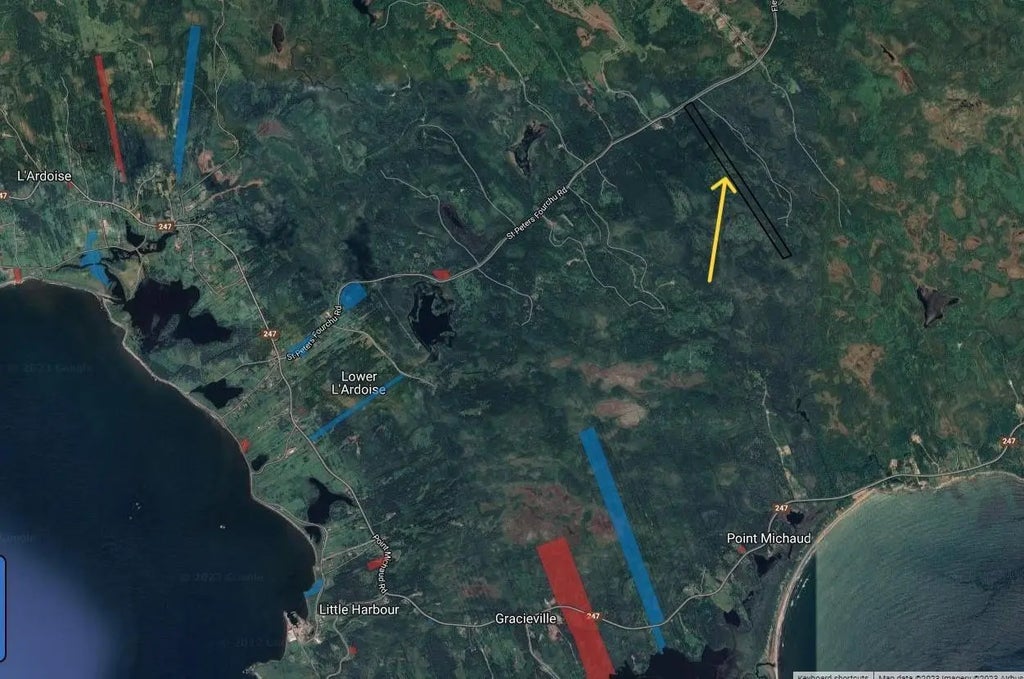 26 acres in Lower L'ardoise. Treed acreage close to L'ardoise, Point Michaud and Grand River. 239 feet of frontage by approximately 4700 feet.