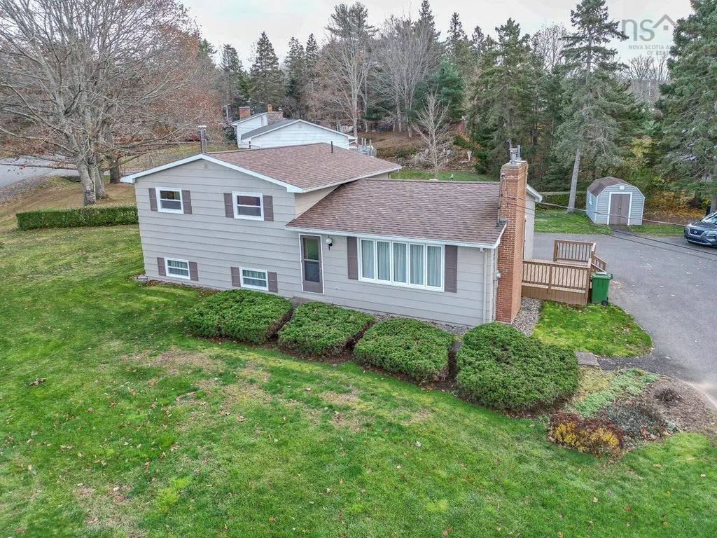 Minas Heights S/D in New Minas features a split-level residence. The main level comprises a Living Room with a fireplace, a Dining Room with a hothouse window, and a Kitchen with a fridge, stove, and a built-in dishwasher. The second level includes three Bedrooms and a 4pc. bath, while the lower level offers additional living space with a rec. room featuring a dry bar, a laundry room, and a 2 pc. bath. Situated on a well-landscaped large corner lot, the property boasts a paved driveway and a spacious parking area. The house is equipped with mostly newer windows, a dishwasher that is six years old, and a brand-new washer and dryer. Additionally, there is a new hot water furnace in place.