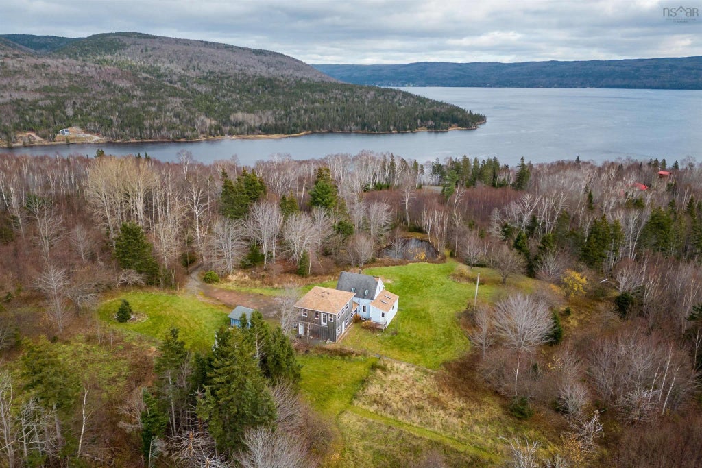 Sitting on 80+- acres of organic lands with a water view, welcome to a modernized home with original farmhouse charm. This 1.5 story, 2 bedroom (+) home is move-in ready. Main Floor is an open concept, spacious, dining/living area organized around the warmth of a WOOD STOVE. An efficient EAT-IN KITCHEN (adjacent pantry) with pass through window extends the gathering space. Off the Landing upstairs are 2 bedrooms (OH Fans), modern bath & walk-in closet. Light fills this home from well placed windows & skylights + is reflected back from the painted & wood decor throughout. Covered VERANDA overlooks a large pond (nesting birds/peepers.). Inside accesses the Full high/dry basement of the main house. A recent large extension is accesses via the front entry and includes a half bath, workshop, laundry & office space through to an attached GARAGE (overhead door and electric charging station) plus an Upper Apartment (wired/plumbed/under development). Grounds LANDSCAPED for drainage. Property features a winding country lane, apple trees, organic plantings & forests + VIEWS of St. Ann's Harbour. SO MUCH POSSIBILITY! This is the renovated, character home that you've been waiting for. Acreage. Water views. PRIVACY. Under 30minutes to amenities of Baddeck and just off of the Cabot Trail. Don't hesitate on this listing & call today for viewing of this spectacular property. There is be 2-3 acres subdivided off before closing, inquire for details on expected survey boundary.