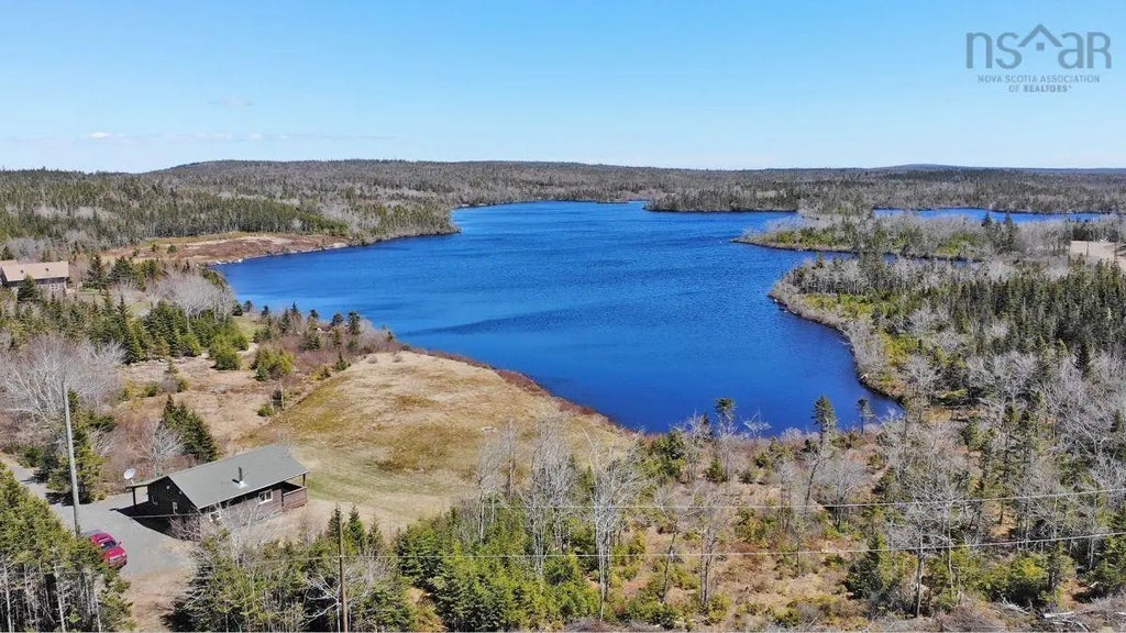Turn key! Affordable living on a small footprint or recreational cottage and vacation home. This lovely 2 bedroom cottage fits it all. The cozy, well maintained cottage is located in a small, private subdivision right at Dobsons Lake, a beautiful, ample sized lake in Guysborough County, Nova Scotia. The cottage is featuring wood outside and in. The wood siding is stained in a warm brown, the inside walls and ceilings are completely finished in natural pine. The cottage is featuring an open living concept with 2 bedrooms and one bathroom. The woodstove was newly installed providing warmth for cozy evenings and cold winter nights. A 24’ x 7 ‘ attached deck is offering stunning views over the lake. The house is built on a 4 foot frost wall, keeping the house insulated from beneath as well as with lots of room for storage and Utilities. Just across the main road is a gas station and a small convenient store. Canso is only approx. a 15 minute drive out. Guysborough with more shops can be reached in 30 – 40 minutes. This over 3-acre waterfront Lot with approx. 410 feet of waterfrontage has lots of potential for individual development. The house has only been used for vacation purposes and is in a well-maintained state.