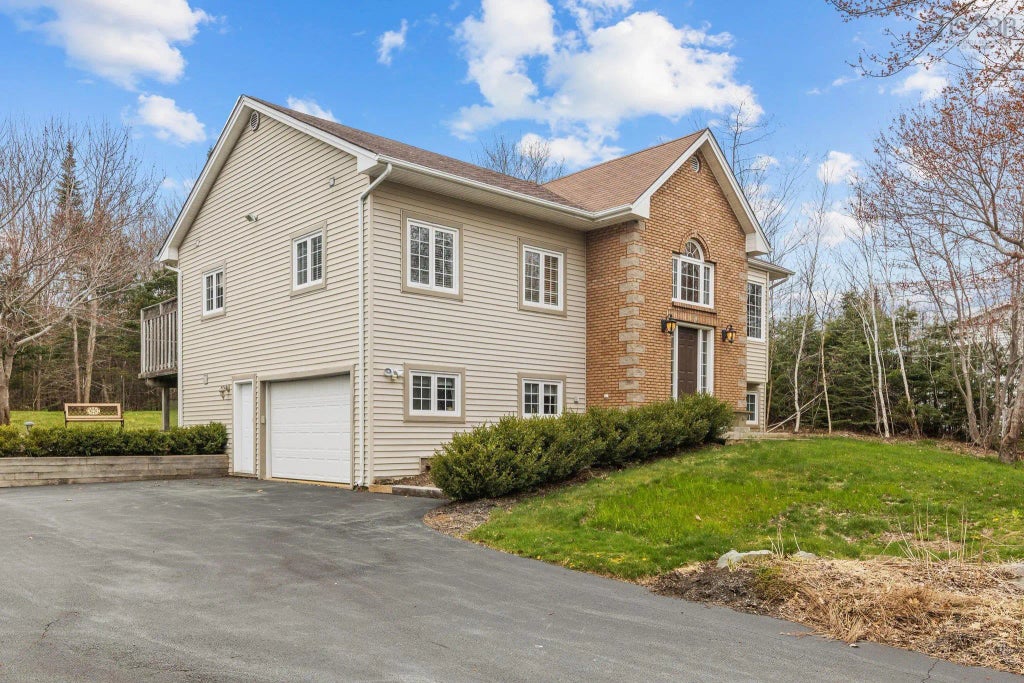 Executive Split Entry home tucked away from the main road. Open concept livingroom, kitchen and dinning with access to deck. Private, treed backyard. Interior finishes sure to impress include hardwood flooring on the main living areas with ceramic in the kitchen and baths, with laminate in basement. Light fills this home with multiple skylights in the main living room, also boasting crown mouldings, and a spacious island in the kitchen. Primary bedroom with ensuite on main level. Second bedroom and main bath complete this level. Continue downstairs to find a cozy rec-room area and third bedroom currently set up as an office. In addition to this, there are 3 full baths. The laundry room, bathroom combo make this lower level a comfortable space for guests or growing children. Convenient garage entry into lower foyer which is large enough to be set up as a mudroom. Garage boasts three storage rooms, one with set tub, mechanical room and storage for an Ideal space for workshop or housing all of the toys. Central location close to all amenities and schools etc. There are multiple parking spaces in the shared driveway. A great design in this property awaits!
