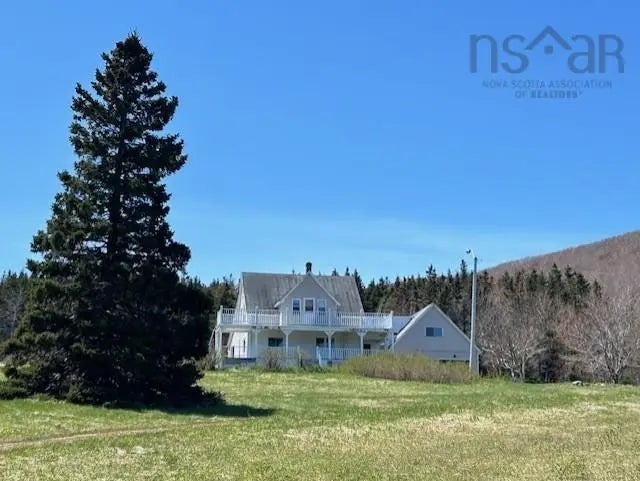 Four bedroom home on 136 acres of land. Mountain views all around. Not far from Aspy Bay beaches. Large family room with a fire place. Bath and laundry combo on the main floor. Additional bath on the second level. Property is on both sides of the road. Two car garage.