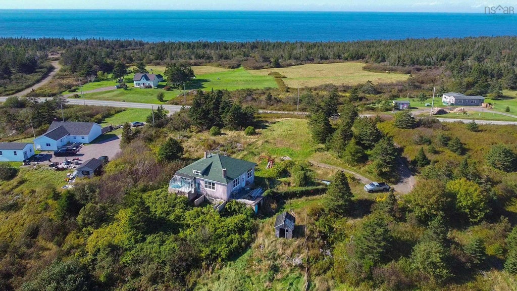 Sunny home situated on 10 acres of land much of it previously used for farming. The open concept home has large bright living room with a cathedral ceiling and views of trees and green pastures, a red wood burning stove to keep you warm in winter and a greenhouse attached to the kitchen. There are two downstairs bedrooms and a full bathroom (needs repair). Upstairs is a loft and storage area that could be converted into another bedroom or used as a den, office or music room. Upstairs there is also another full bathroom a large attic area and a sauna!! The yard is lovely with years of perennial plantings and fruit trees, berries and grapes. There is a fish pond with big goldfish swimming. The back of the 10 acre lot ends at a brook suitable for trout fishing and from the front of the yard there is a view of the Bay of Fundy. Five new large vinyl windows, a new door and a new door step were installed in 2021. The home needs paint, flooring, and renovations to kitchen and bath, once done this house will shine. The house is located in Freeport on Long Island. Freeport is a vibrant community with an art gallery, community garden and greenhouse, well stocked general store with a cafe, Legion, medical centre, church, museum and public school. Its a great place to hike and bike the trials, kayak in the cove, watch whales and enjoy nature. Digby with all its amenities is a 5 minute ferry and one hour drive away. Please book a viewing today.