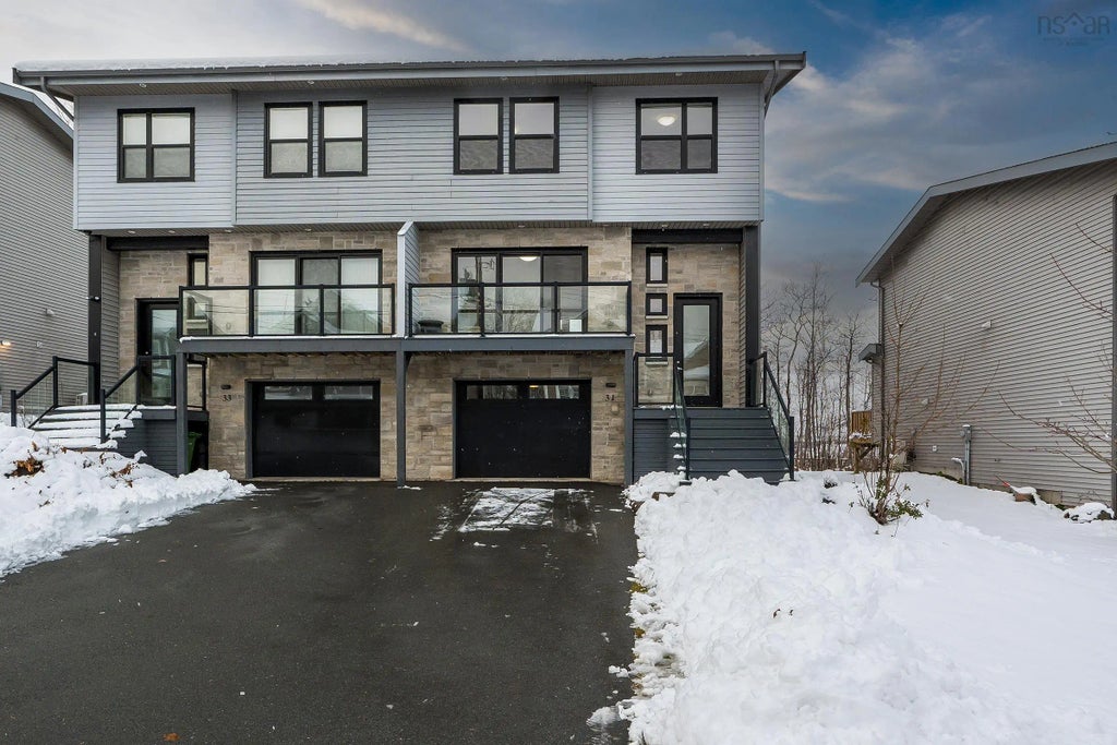 This exquisite and contemporary semi-detached residence in West Bedford stands out as a top-tier property. Nestled against a greenbelt and consistently upgraded since its construction ten years ago, it seamlessly blends various trends to appeal to a diverse range of buyers. The well-lit main level boasts 10' ceilings in the kitchen and living area, accentuating the spaciousness. Abundant large windows flood the space with natural light, highlighting the lustrous hardwood floors and staircases. The kitchen is fully equipped with large countertops, a pantry, backsplash and more. A captivating dining room with patio doors to a second deck enhances the entertaining experience, complemented by updated light fixtures throughout the home. The second level accommodates three bedrooms, two baths, and laundry facilities. The elevated master suite, featuring a walk-in closet, ensuite, and tiled glass shower, is truly impressive. The lower level includes a recreational room, a full bath, and access to the built-in garage. private back deck, there are even more features waiting to be explored, welcome for showing.