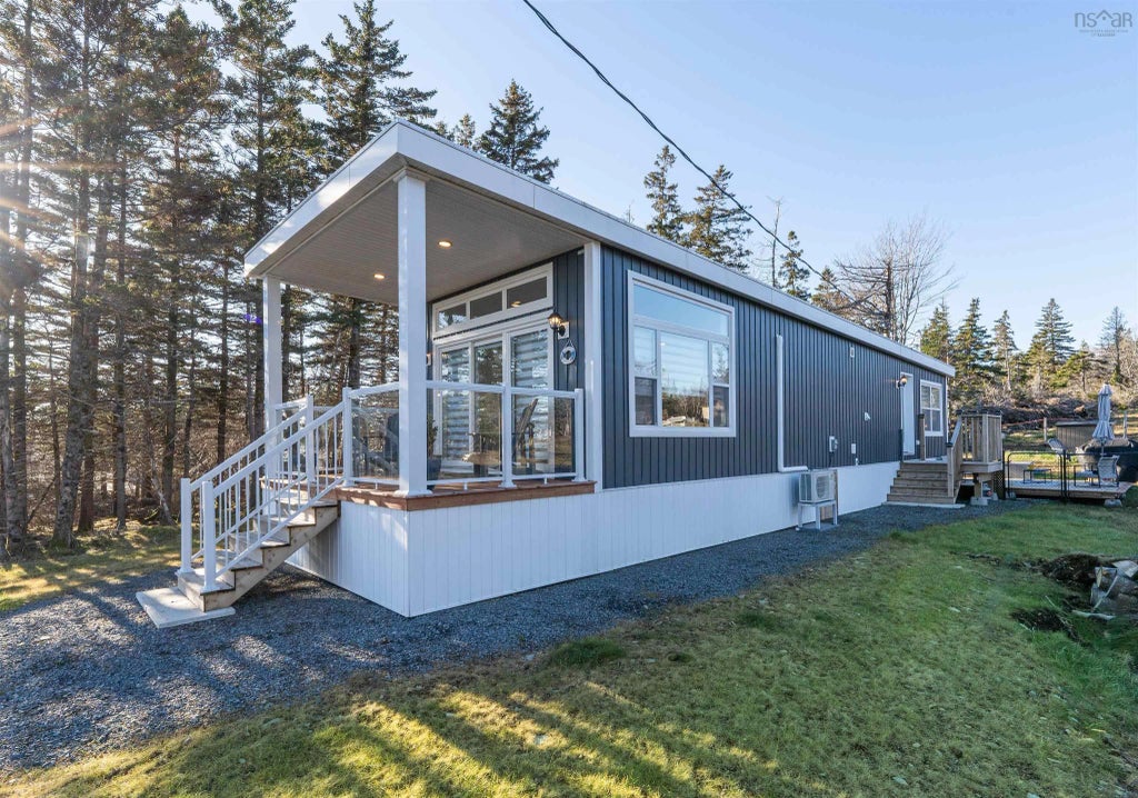 Welcome to 1183 Blue Rocks, a slice of Atlantic Canadian paradise nestled on the shores of Blue Rocks, Nova Scotia. Wake up to the gentle embrace of the Atlantic breeze and the soothing sounds of waves, with stunning ocean views greeting you from your private, south-facing retreat. Every day begins with a spectacle of sunlight streaming through expansive windows, and ends with vibrant sunsets over the ocean, viewed from your glass-railed front deck. Inside, the brand new home blends comfort with modern elegance and is perfectly placed to enjoy the incredible water views. The open design is ideally suited for today’s lifestyles, with air conditioned comfort the spacious living room with 9ft ceilings blends so naturally with the dining area and the corner kitchen. The ample modern oak grain style shaker cabinets, full size stainless steel appliances, tile backsplash, double sink and tasteful countertops make this gourmet kitchen an absolute showpiece! The full size bathroom is tastefully appointed and the full tub surround offers convenience for comfort and easy cleaning. The secondary bedroom is ideal with space for a queen sized bed while the primary bedroom is tucked away, perfect for extra privacy and large enough to enjoy the king size bed too! The water softener, stackable washer and dryer also ensure comfortable living. The backyard with a new deck and fenced area, is perfect for peaceful evenings and pet-friendly living. Embrace the local culture of Blue Rocks, a community celebrated for its exceptional paddling waters and charming village life. Nearby, the historic town of Lunenburg, a UNESCO World Heritage Site, offers a vibrant tapestry of unique shops, award-winning restaurants, and a bustling harbor, echoing the rich maritime history of the region. 1183 Blue Rocks is both home and an escape to a life of serene beauty and adventure. Ideal as a cottage, AirBnB, or year-round residence, this property offers a lifestyle where every day feels like vacation.