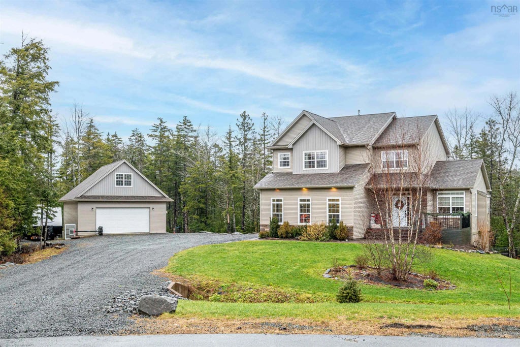 Absolutely Stunning Executive 2-Sty Home In Capilano Country Estates with 2+Acres and City Water! This beautiful large home has a unique and open layout on the main floor, 9' ceilings, Propane fireplace for taking the chill off, and luxurious kitchen with dark-stained cabinets that go all the way to the ceiling. Upstairs, there is a large BR for everyone including the massive Principal Bedroom w/sumptuous ensuite and roomy walk-in closet. Lower Level is fully finished w/ huge RecRm, full bath, 4th BR ideal for guests or teens, two walkouts, and storage. Energy efficient ducted heat pump provides heating and cooling with no oil, covered main-floor deck gives you three seasons of outdoor fun. Park in the built-in double garage, keep your toys and hobbies in the detached wired double garage with finished loft (used as gym). Extensive landscaping, fenced area for pool or dog, and loads of parking make this home ideal. Check out the 360 tour, watch the video and send us a message for your own private tour!