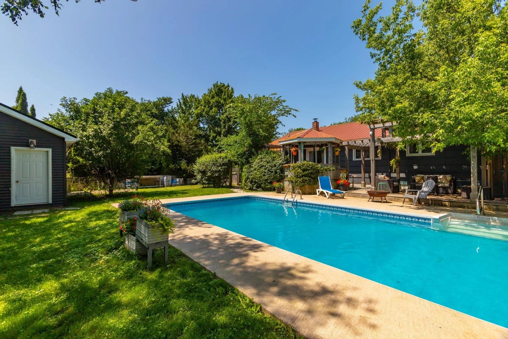Fantastic executive style bungalow with it's spectacular outdoor living area! With two bedrooms and laundry on main level, huge walk-in closets, wonderful full bath with deep soaker tub and an ensuite for the primary BR. Dining room leads to back yard outdoor living space that includes 3 year old hot tub in its own covered pergola. A separate gazebo and extensive decks overlooking the 30 x 16 heated in-ground pool with it's concrete decking, there is even an outdoor 2 pc washroom, Finished basement area with huge family room to entertain includes wet bar, a craft or hobby room, the utility room and another spare room, This house has been totally renovated in past seven years including metal roof. There is also a 16 x 25 one bay garage/shop plus a 12 x 8 greenhouse and another 12 x 16 outbuilding for storage. The huge back yard allows for lots of garden space. This property is in a great location just steps from Bridgetown's outdoor sports hub, the modern school and other facilities. Easy commute to CFB Greenwood. Don't miss this one as there are so many extras including all major kitchen and laundry appliances, dining table and kitchen breakfast bar table.