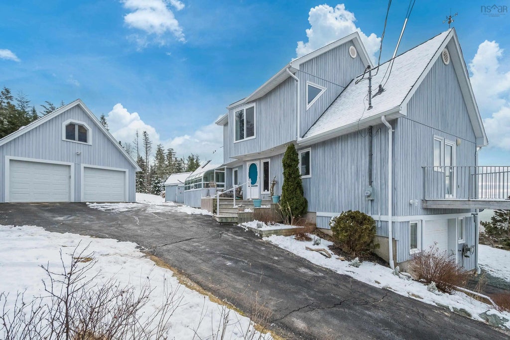 Perched in a quaint fishing village, this property is a sunset lover's paradise. South west facing windows throughout the house offer ample natural light and ocean views from nearly every room. The main floor is ideal for those who enjoy one level living. When you enter into the main foyer you are pulled towards the grand living and dining space with vaulted ceilings. French doors lead you to the huge composite deck(2021) where you can bask in the sun and gaze over the Petpeswick inlet. A beautiful automatic awning provides lovely shade on hot summer days. The main level also offers a large eat-in kitchen with ample storage space and quartz countertops(2020). Off the kitchen is the solarium mudroom and laundry, ideal for those muddy family boots. For privacy each wing of the main level features a spacious bedroom and full bathroom. On the kitchen end is the primary bedroom complete with a walk in closet and ensuite bathroom. In the centre of the house is a statement spiral staircase which takes you up to a loft above the living room, functioning perfectly as an office or rec space. Down the spiral staircase is an incredibly versatile lower level, complete with a workshop, single car garage, 3 piece bathroom, utility room, walk out, and 3rd bedroom. The 3rd bedroom space is massive and could easily be broken up in to a smaller bedroom plus recreation space. Plumbing is also in place for a sink, should you desire a wet bar or full kitchenette, making this a fantastic in-law suite or apartment. Off the walk-out basement is the screened-in porch and large stone patio. In-floor heating fueled by a propane boiler(2022) keeps you cozy all winter, and 2 A/C units maintain your comfort in the summer. Outside you'll find a large shed and huge wired detached double garage, complete with heating and a versatile finished loft. Minutes to Martinique beach, surfers will appreciate the outdoor shower to get the sand off! Don't miss all the opportunities this property offers!