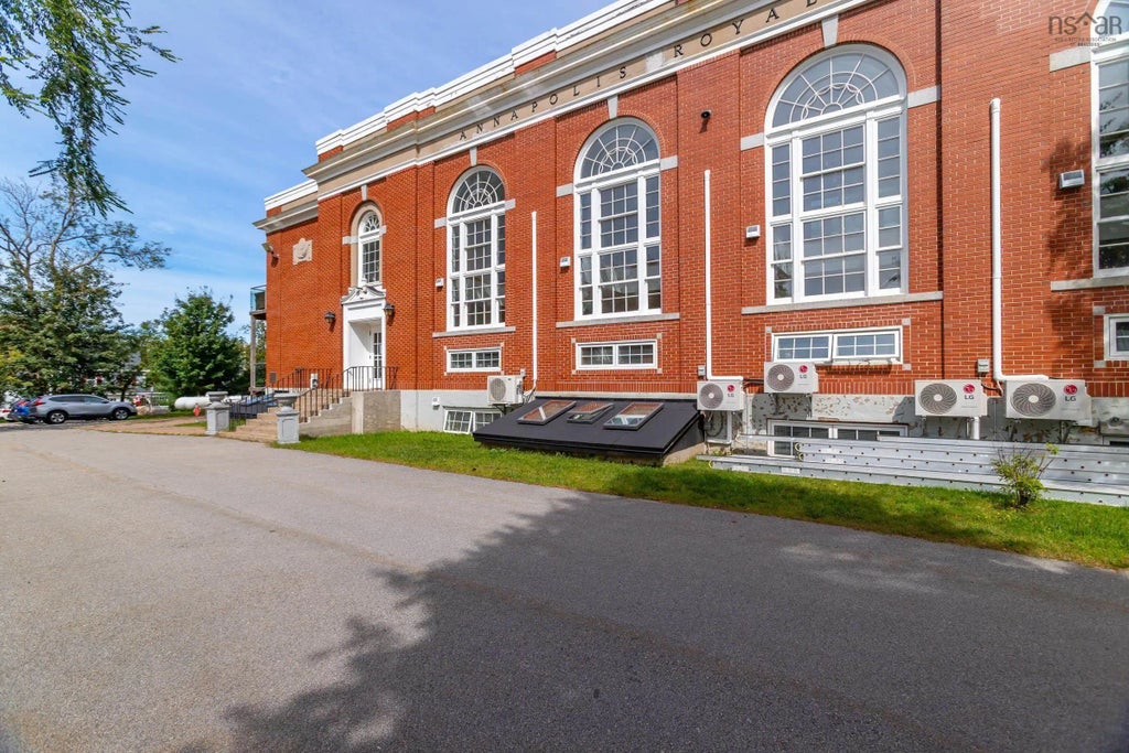 Kick off the New Year with a lifestyle change! Say goodbye to snow shoveling and property maintenance, and hello to convenient, easy, luxury living. Welcome to Unit 109 at the Academy Condos in Annapolis Royal. This condo is a classic & contemporary 2 bedroom, 2 ensuite, main floor accessible home. Symmetrical layout with tall ceilings and large sunny windows, this tastefully designed & decorated condo is immaculate and move-in ready. Quality craftsmanship is evident throughout, with sparkling quartz countertops, stainless steel appliances (included), gleaming cabinetry with soft closures and solid bamboo flooring, just to name a few of the attractive features. Easy to heat & cool with an efficient ductless heat pump (Nov 2022). Enjoy fresh air and relaxation on the private glass-front patio (5'x20') which has been customized to keep pets safely contained. The suite also includes plenty of storage, laundry nook and an air exchange system. To complete the package there is an additional assigned storage locker along the corridor, plus a huge shared storage room for bicycles, a paved off-street parking spot just steps from the main door, and plenty of paved visitor parking. It gets even better. Within this condo complex is the Town's Community Hub which includes a large modern public library, cafe, gymnasium, bouldering wall, Innovation Lab, meeting rooms, and music room. All accessible via an internal entrance. Healthy Condo Corp. financials, low condo fees and live-in property manager provide peace of mind. This historic gem is located within one of the nation's largest historic districts, surrounded by registered heritage homes on a picturesque tree lined street, and strolling distance to the heart of Annapolis Royal and all its amenities. Welcome to the Academy Condos where you can simplify your lifestyle and make time to do the things you love.