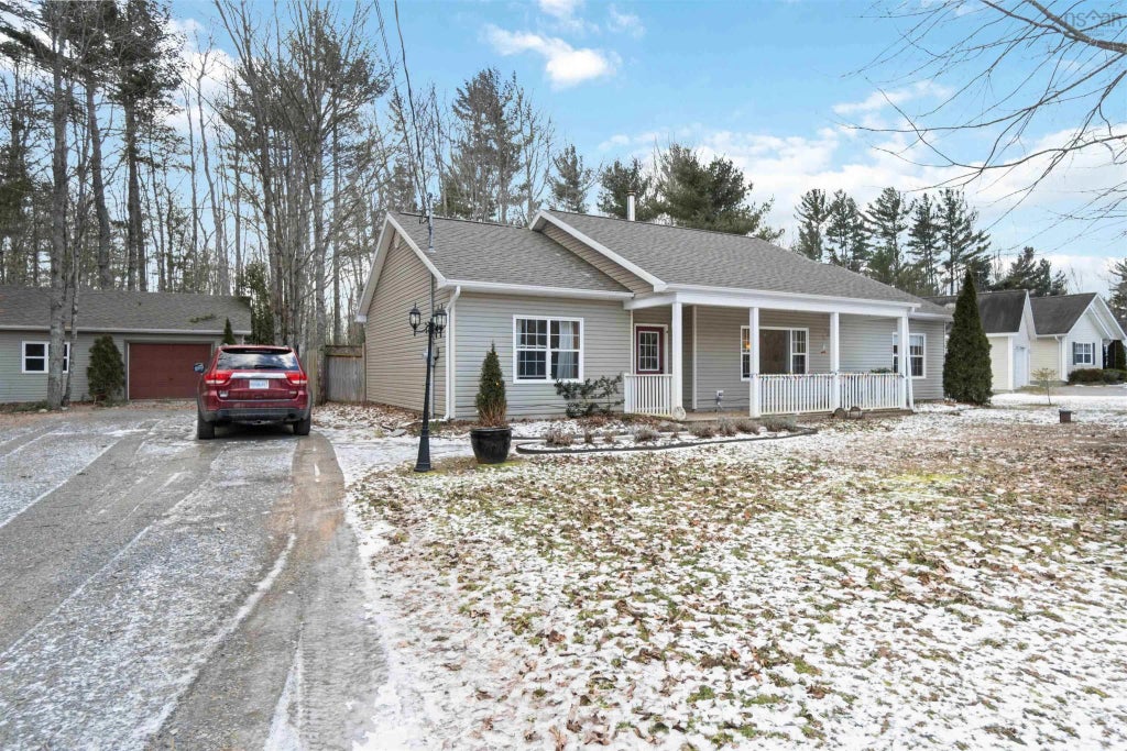 Stop into this inviting 3 bedroom, 2 bath ICF constructed bungalow, perfectly located just 15 minutes from 14 Wing Greenwood in Nova Scotia. This Property offers a serene and secluded setting, exceeding all expectations. Nestled on 1.15-acre, beautifully landscaped lot with mature trees and a fenced back yard, it's a haven for both pets and children. Step onto the charming covered veranda, which overlooks perennial and vegetable gardens. Enter a spacious front foyer with built-in storage and a closet, setting the tone for the inviting interior. The open concept kitchen, living, and dining area features garden doors that lead to the back sundeck, creating a seamless indoor-outdoor flow. Throughout the home, an oak trim package complements the rustic design. The kitchen is a standout, boasting custom cabinetry, a two-tiered breakfast bar island, and ample workspace. Other notable features include a new woodstove, a roof reshingled in 2018, wiring for a generator, in-floor heating, and an energy efficient heat pump. The unique layout places a spacious master and a luxurious 4-piece ensuite on one side, while 2 additional well-proportioned bedrooms and a combined 4-piece family bath/laundry provide an ideal layout for everyone's privacy. Outside, a detached, wired, heated garage/workshop and a garden shed offer convenient storage and workspace. This is a single-level living at its finest.
