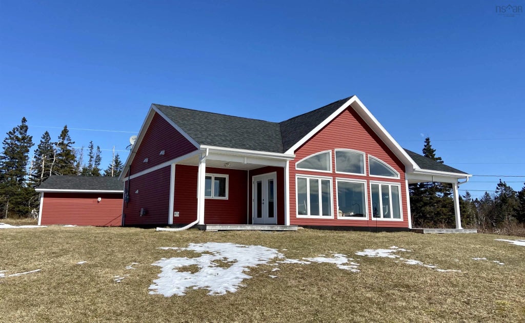 Welcome to 151 Burkes Road in picturesque French Cove, Cape Breton, Nova Scotia. This spectacular 3 bedroom home with incredible views of the Bras d’Or Lake is just 7 years old! The spacious home is perfect for a family or the host. Walk into a welcoming open concept kitchen, dining room and livingroom with cathedral ceilings and a warm fireplace. Large windows in the main room allow for beautiful natural light during the day. The primary bedroom with ensuite bath and soaker tub is lovely. The primary also boasts a large walk in closet and a walk out, sheltered patio that’s angled to enjoy morning sunrises while minimizing any breeze. The second deck is west facing for beautiful sunsets. On the other side of the home there are two large bedrooms and a 3 piece bath with a stand up shower. Another incredible feature of this home and property is the garage with studio! Wired, heated and insulated this is a great spot to retreat, relax and play some music or have another recreational space! The home is located in a very private setting with lots of space between neighbours. Just a 7 minute drive to local amenities of St. Peters and a 25 minute drive to Dundee Golf Course. This home and property have it all and can be yours. Call or text today for more information!