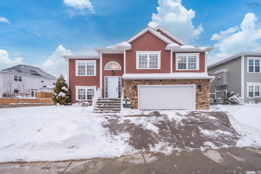 Set on a quiet cul du sac in Royal Hemlocks, you're going to fall in love with this one owner split entry. Built with quality by Gerald Mitchell Homes and meticulously maintained, this home seamlessly combines modern design with practical living! Enjoy easy access to the trails of Hemlock Ravine Park, overlook Cabin Lake from your back deck, and effortlessly access the many amenities of Larry Uteck drive. As you ascend into the main level, you're greeted by an open-concept layout that effortlessly connects the living, dining, and kitchen areas. The vaulted ceilings in the living and dining room enhance the sense of space, and large windows flood the area with natural light. The cozy propane fireplace adds warmth and ambiance to the space. The kitchen boasts a large island with ample seating, making it a focal point for both cooking and socializing. Step outside through the dining room onto a spacious composite deck, complete with a pergola, providing a perfect spot for outdoor relaxation and entertaining. Rounding off the main level is three bedrooms and 2 bathrooms, including a luxurious primary bedroom boasting two closets and an ensuite for ample privacy. Downstairs is access to the fantastic heated double attached garage. With epoxy floors, this clean and functional space can easily double as a home gym, mudroom, or whatever your heart desires. An additional large bedroom, generous rec room, and a third full bathroom combined with laundry complete the lower level, offering flexibility and space for various activities. Efficient heating and cooling are ensured by the electric ducted heat pump, providing year-round comfort while keeping energy costs in check. Outside you'll find a beautiful exposed aggregate driveway, large grassy front yard, and a super sweet backyard for the family to play and relax under the shade of the chestnut trees. Don't miss the chance to get in the fabulous neighbourhood!