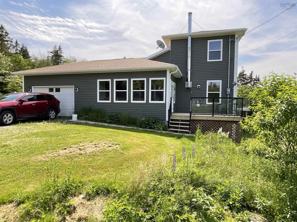 An extremely well planed and built large house, built in 2011, on a 100+ acre with several brooks on the property sporting marvellous views from the house of Chedabucto Bay. The house is located high on a hill ,truly private and secluded. The basement feature 10’ ceilings with a large(28’x18’10”)workshop that’s accessible from outside via a wide door. A wash basin is a helpful addition to the shop. Two good size rooms and a two piece bathroom are also part of the basement. Ample storage with built in shelving and a utility room round up the picture. Living takes place mainly on the ground floor. From there, a lovely staircase leads to the spacious upper level office/den or whatever else room. The best view from there! A very nice sunroom and attached garage and a half, which is lovely in itself (lots of windows and exterior door to the backyard plus electric overhead door, fully finished)are part of the main floor. All rooms are bright and spacious. Ensuite five piece bath and separate walk in closet(very effective and large, with built in shelving)plus a good size balcony with glass railing, round up the master bedroom. All in all, one must see and feel this house to fully appreciate it in all of its glory.