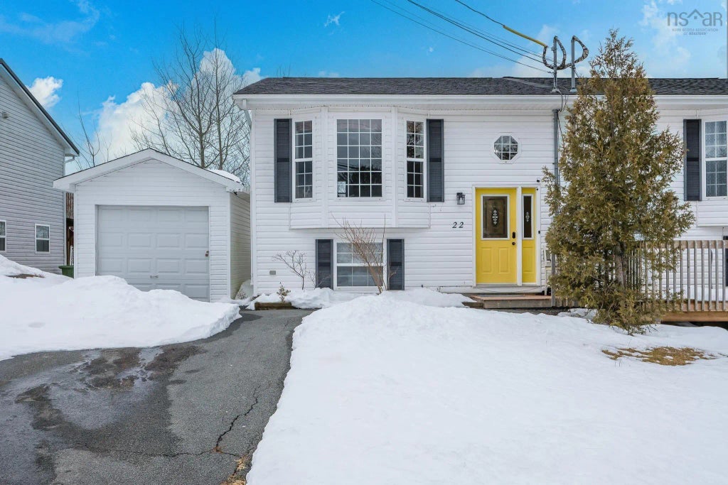 Welcome to 22 Patrick Lane in the feverishly popular Cole Harbour community of Dartmouth, Nova Scotia. This 3 bedroom, 2 bathroom 2 level semi-detached home features a deceptively large open concept layout on the main level, a bright kitchen overlooking an expanded back deck and fenced-in yard, brand new flooring throughout, 2 energy-efficient heat pumps for savings and heating & cooling, spacious bedrooms, huge shed, and a double-wide paved driveway. The main floor is a delight with its on-trend white kitchen, an abundance of cabinets and surface space, and a peninsula bar. The stainless steel kitchen appliances are all newer and there is space abound for a large dining table and your living room furniture. A powder room bath completes this compelling floor. The lower level is host to three spacious bedrooms, a full bathroom, and storage/utility space. First-time and experienced buyers will appreciate the functionality, pride of ownership, and location of this gorgeous home. Upgrades include: vinyl flooring throughout (2022), deck extension & stairs (2022), washer/dryer (2022), 2 heat pumps (2021), roof shingles (2021), kitchen appliances 2021-2022, fresh paint, and more! Minutes from Salt Marsh, Rainbow Haven, Lawrencetown, Bissett Lake, great schools and walking trails! Call today, you won't want to miss this one!