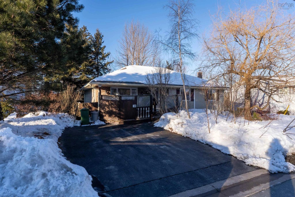 Welcome to this three bedroom bungalow located on a quiet crescent close to Millwood and the shops of Sackville Drive. The main floor has a generous living room with large south facing windows, hardwood floor and propane fireplace. The spacious dining and kitchen area includes a pantry and plenty of counters, space and cabinets, along with patio doors that open to the deck. There is a convenient walk-through from the primary bedroom to the bathroom. One of the other bedrooms on this floor has been opened up to create a den; however, this could easily be converted back to a bedroom. Most of the main floor was freshly painted just a few weeks ago. The lower level has lots of potential (roughed in plumbing already there) with a full walkout door to a sloped and treed backyard which is private once the leaves pop. Very little yard work required in the front or the back of the house. Will need a little TLC and decking will need to be replaced. This is an excellent starter or retirement home. Offers are due on Monday, February 26 at 2 PM please.