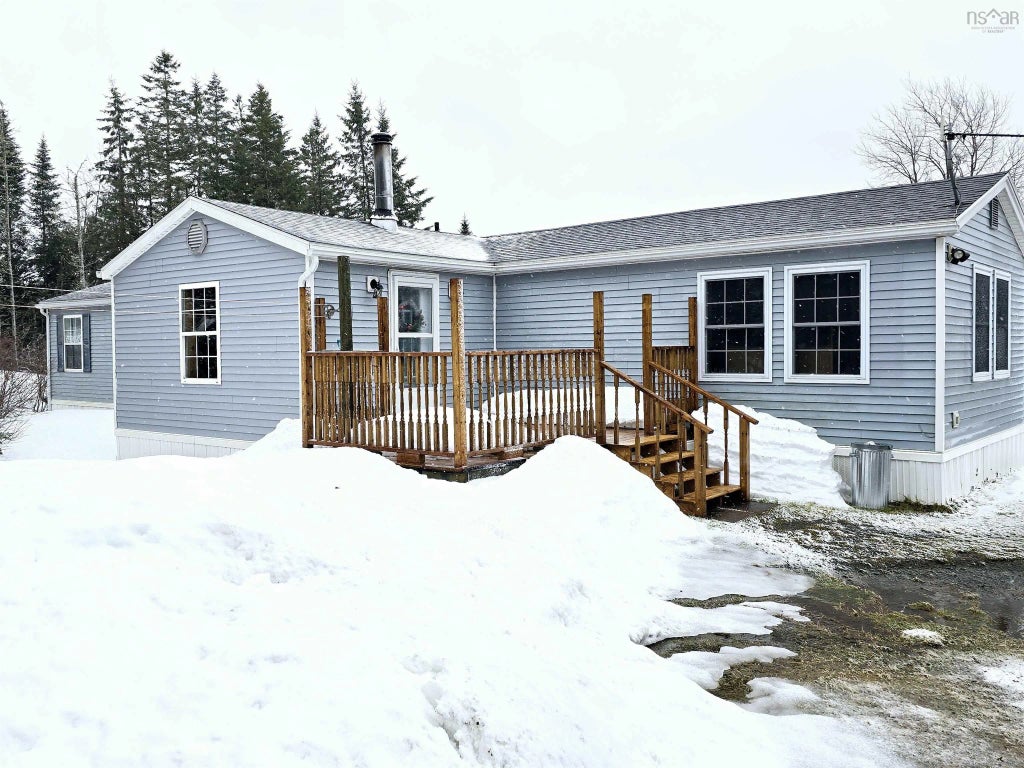 Welcome to this charming 3-bedroom, 2-bathroom mini home nestled on a spacious acre of land in Mouth Thom. Conveniently located just 45 minutes from Halifax airport and within 20 minutes of both New Glasgow and Truro, this property offers a perfect blend of tranquility and accessibility. The residence features a large eat-in kitchen with a dining area, providing an inviting space for gatherings. The bright living room adds warmth to the home, creating a comfortable atmosphere. The primary bedroom boasts a 3-piece en-suite bath. Positioned at the opposite end of the home, the additional bedrooms and bathroom will be found, ensuring a well-designed layout that accommodates both privacy and convenience. A noteworthy addition is the spacious mudroom, complete with a wood stove, providing practicality and comfort. Enjoy the serenity of the outdoors on the generous deck and revel in the privacy offered by the lush surroundings. With three outbuildings providing additional storage and versatility, this property is not only a home but also a haven with its secluded setting. Many ATV and snowmobile trails to enjoy near by. Don't miss the opportunity to make this unique property your own.