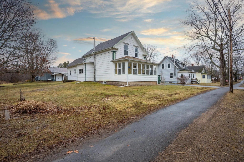 Calling all first-time home buyers! Now is your chance to stop paying high priced rent, and to start investing in your financial future. Perfect for young families! A desirable elementary school is within a 5-minute walk, and a well-kept picnic park and baseball field are right across the street. Sitting on a spacious 1.8-acre lot, the beautiful yard features a wooden bridge crossing a small stream, XXL garden plot, a variety of berry bushes, complete with your own ruburb patch. The detached 25x35 barn is full of potential and flexible C3 zoning would permit for an in-home business. Stepping inside, you will find a bright and cheerful interior with a mix of modern updates and old-world charm. You can easily picture yourself gathered around the kitchen island enjoying a cup of coffee with friends, or hosting a dinner party in the dining room with its bay window and built in china cabinet. The 3-season sunroom will be a fan favorite and is the perfect spot to relax after a long day. Convenient touches such as the mudroom with laundry connections, large 4pc bath, and main level bedroom/office adds to the appeal. Upstairs, you will find two additional bedrooms (one with a walk-in closet) and an added bathroom with stand-up shower. The attic could be developed into additional living space if needed, or is great for extra storage. Two efficient heat pumps and recent vinyl windows keeps you comfortable and utility bills affordable. A solid foundation with spray foam insulation and concrete floor completes the package. Ready for your viewing appointment, this property is a pleasure to show!