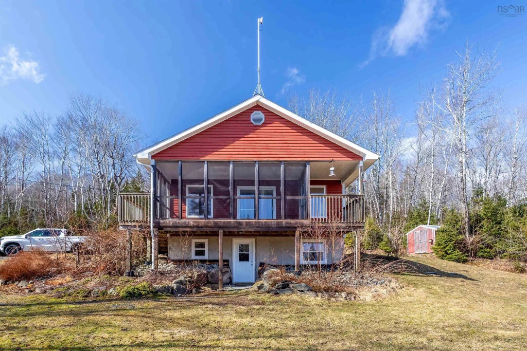 This stunning chalet style home is nestled on over 2 acres of beautifully treed property with approximately 80 meters of Riverfront. On the main level you will find a porch, an office space, a full bath, bedroom with double closets and an open-concept living room/kitchen area with wooded, cathedral ceilings and a woodstove and a set of patio doors that lead out to the covered front deck. The lower level of the home has a spacious bedroom, a second full bath and an unfinished storage area that houses the utilities and laundry. There is a walkout entrance on this level. Also located on the property is a Guest house with a living space as well as a full bath and a storage area. If you follow the foot bridge you will find the gazebo on the waterfront. This home is the perfect retreat. Call to view today!
